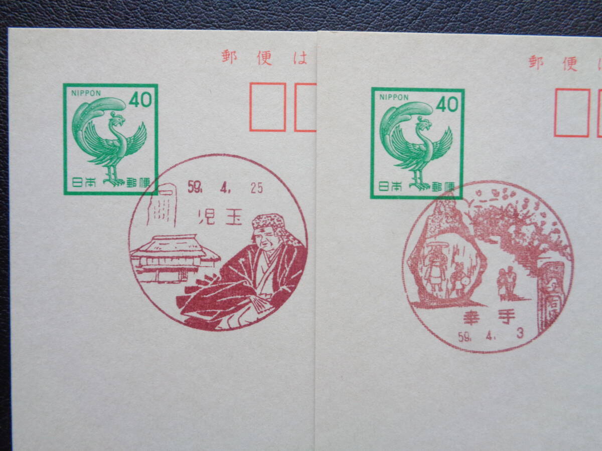 鳳凰はがき    初日印/風景印    埼玉県2枚    幸手/S59.4.3    児玉/S59.4.25