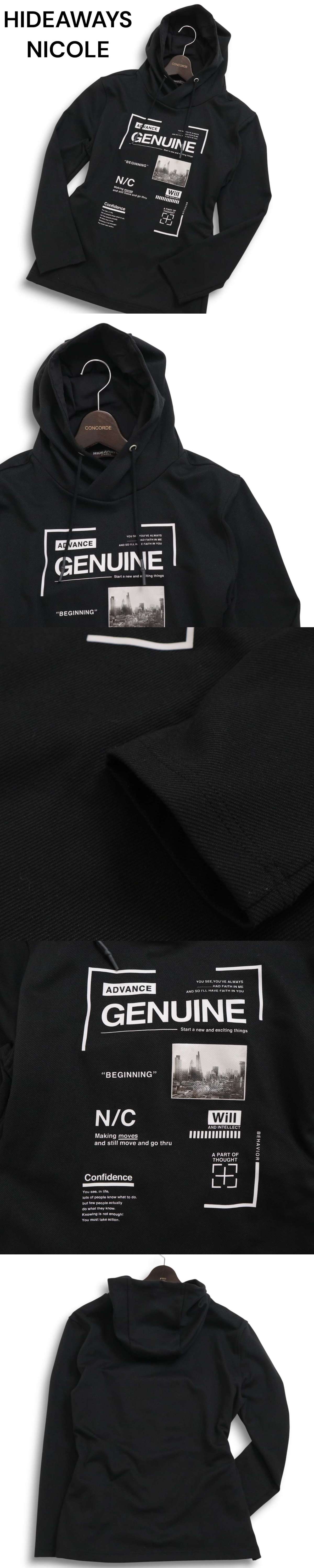 HIDEAWAYS NICOLE ハイダウェイ ニコル 通年★ プリント パーカー プルオーバー フーディー Sz.48 メンズ 黒