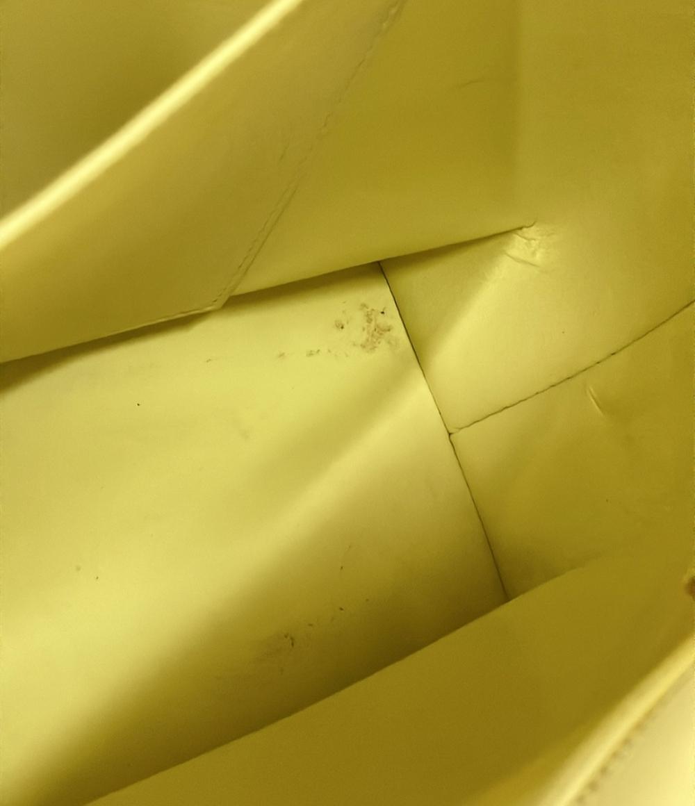 | 表面、背面、側面、底面、ポケット内、内面、ハンドル、開口部に汚れあり 角、開口部縁にスレあり 金具パーツに剥げあり |