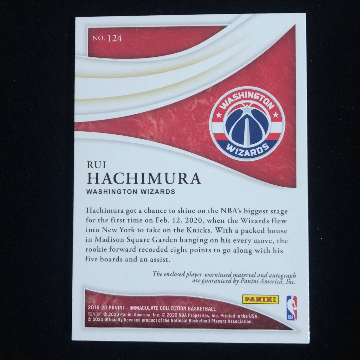 八村塁 Hachimura Rui Panini Immaculate 2019-2020 /99枚限定 RPA Rookie RC Patch Autograph Auto サイン 直筆 ウィザーズ Wizards