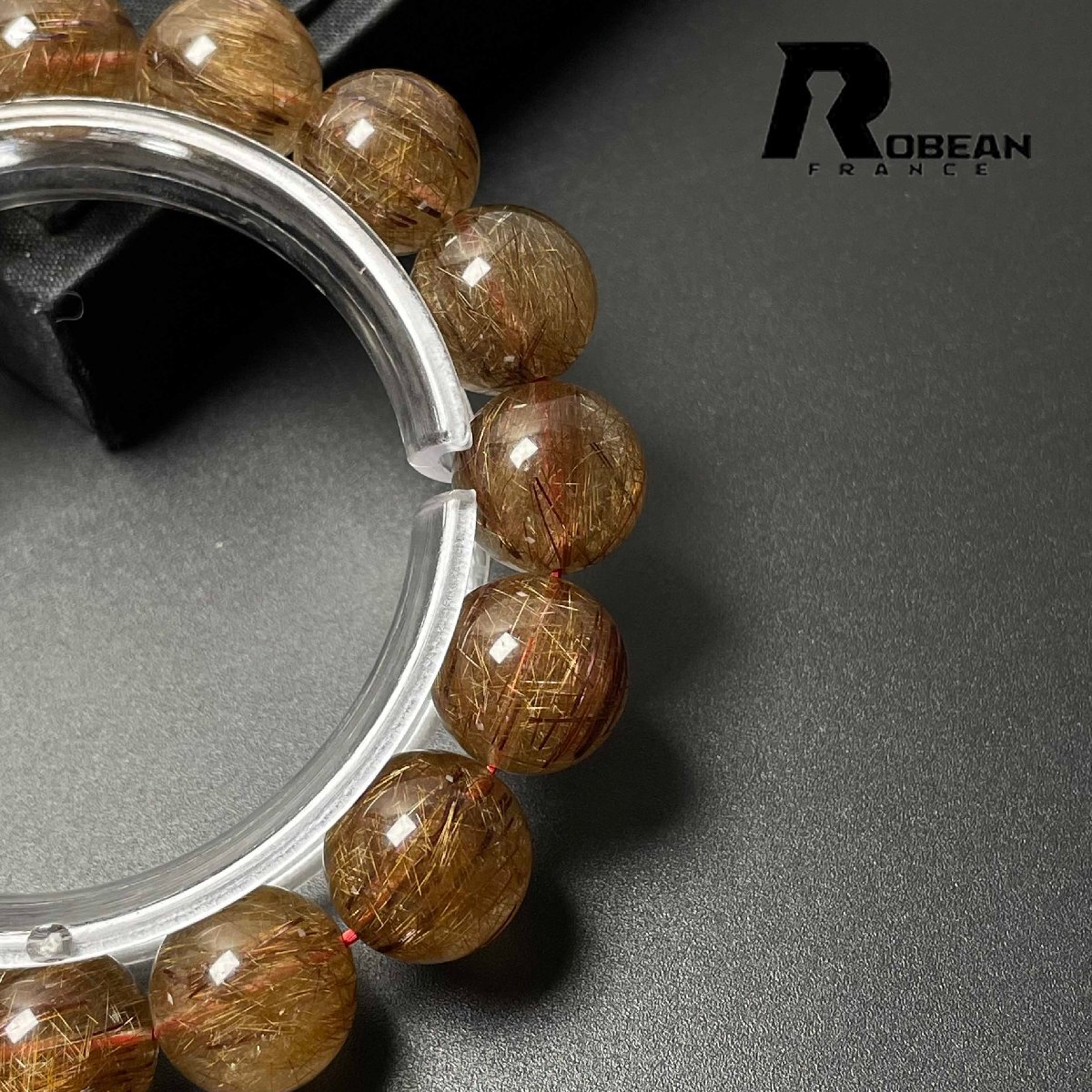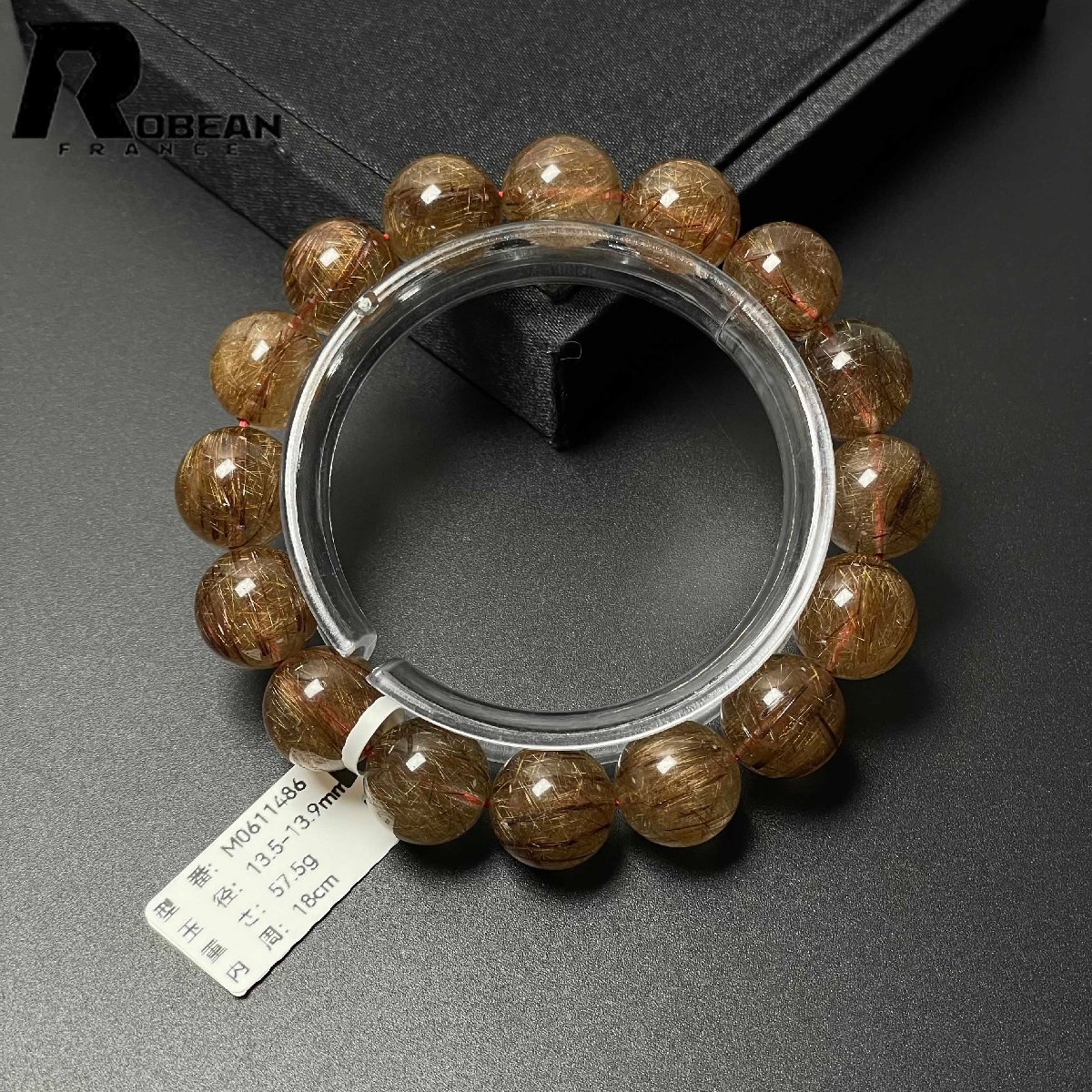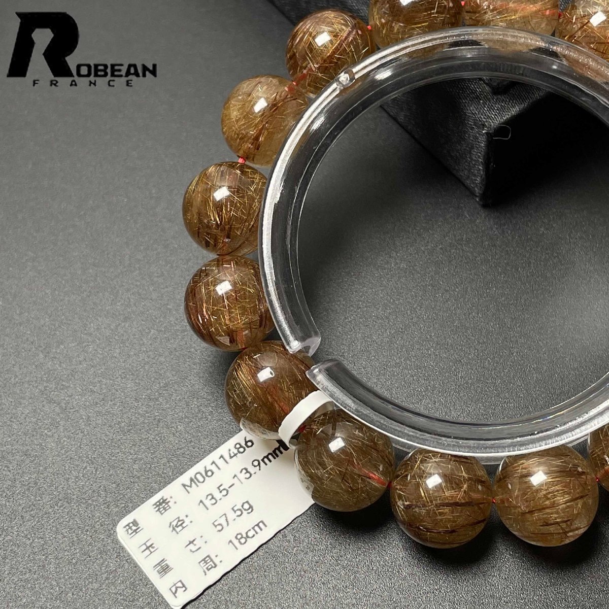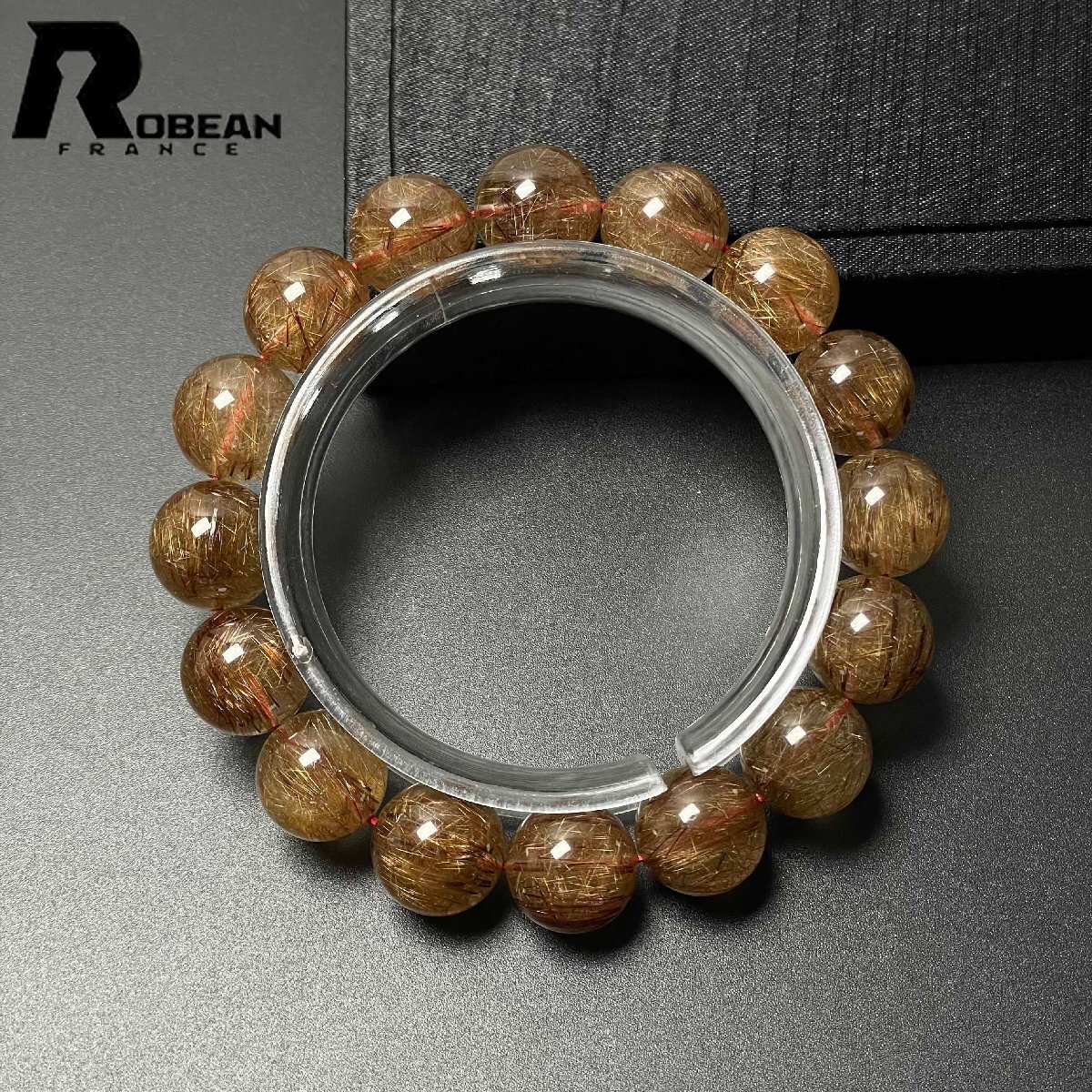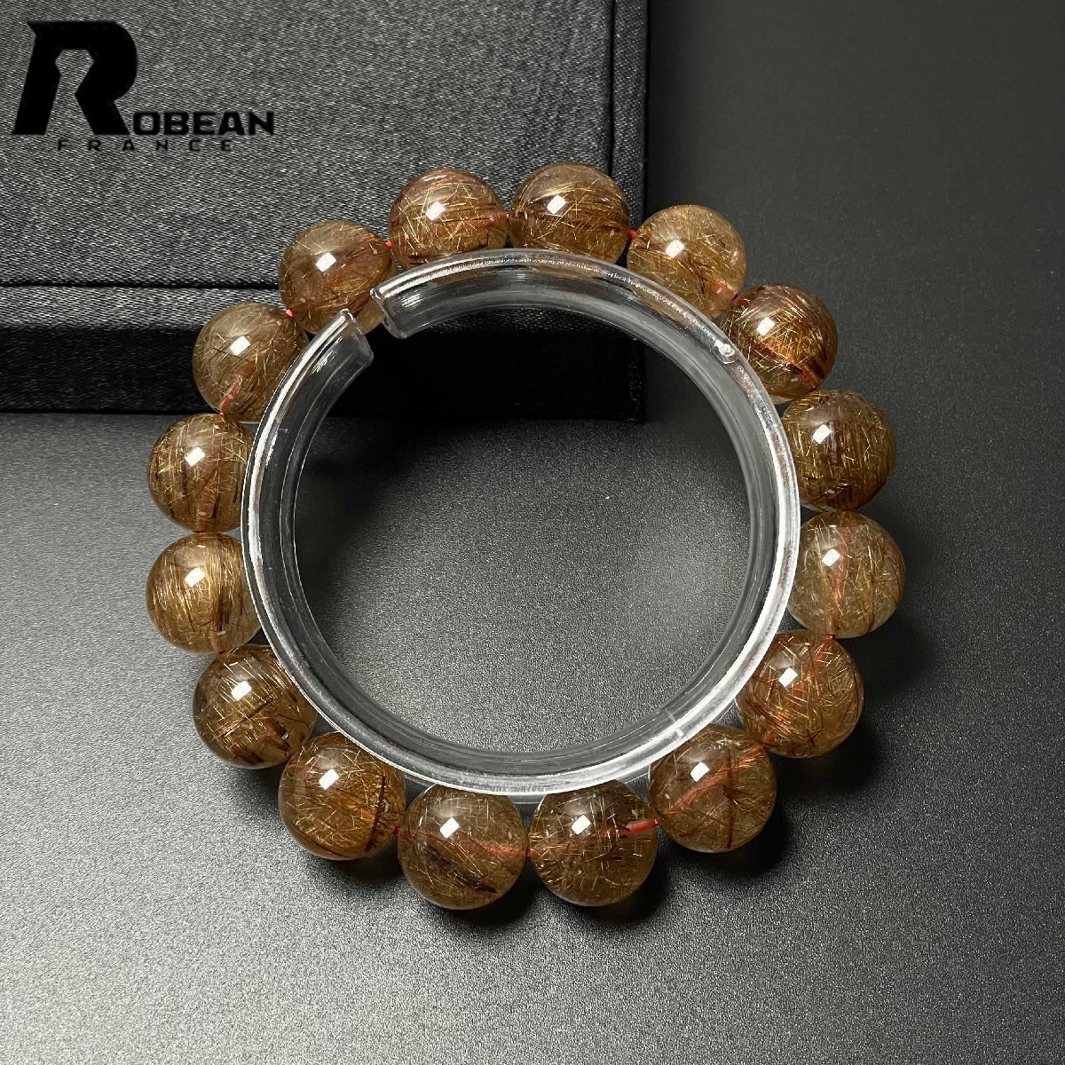 上品 EU製 定価21万円★ROBEAN・銅髪ルチルクォーツ★ブレスレット パワーストーン 天然石 綺麗 金運 お守り 13.5-13.9mm M0611486