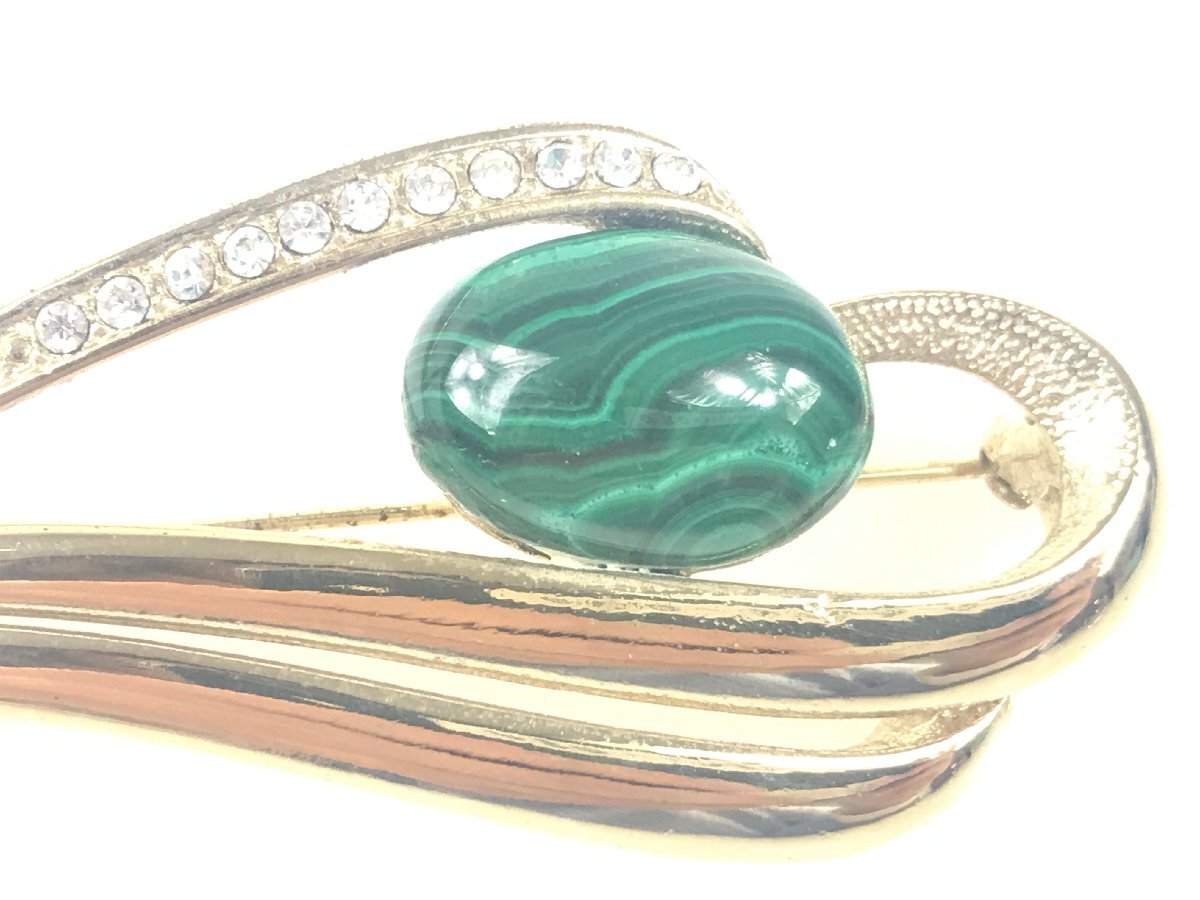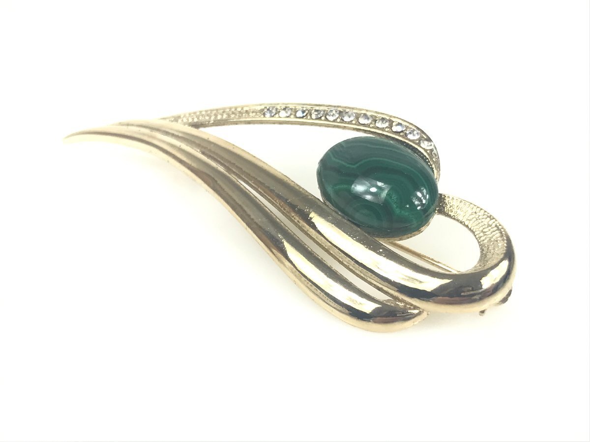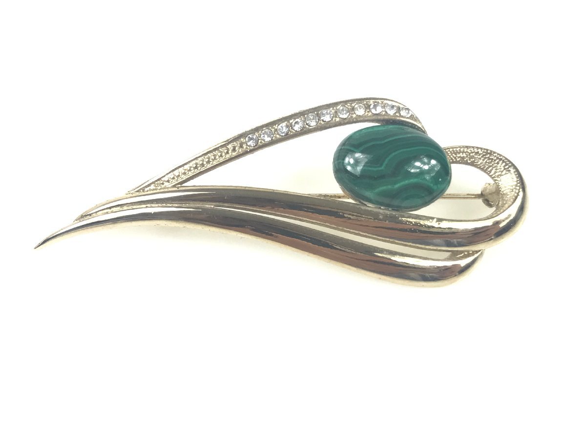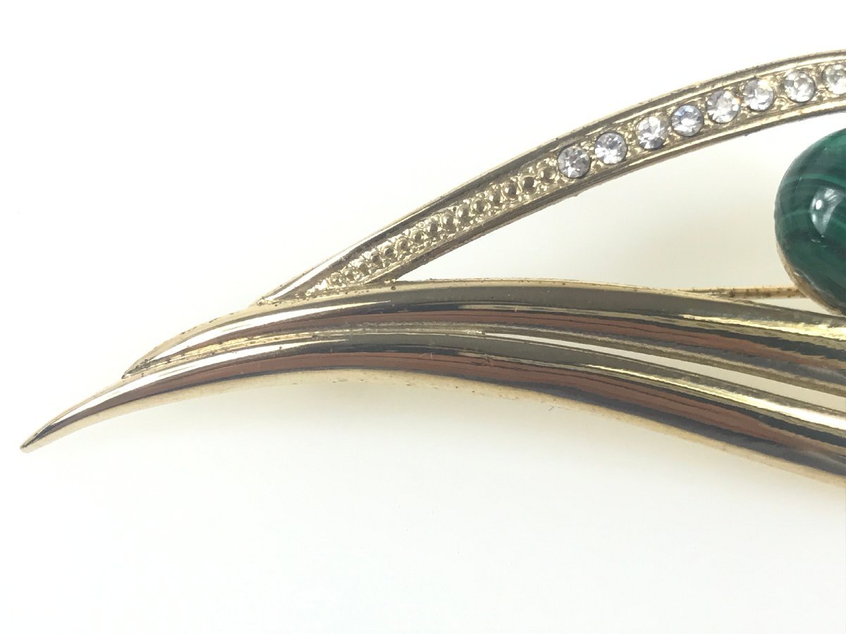 商品名 | 孔雀石 マラカイト 北海道産 ラインストーン ブローチ |