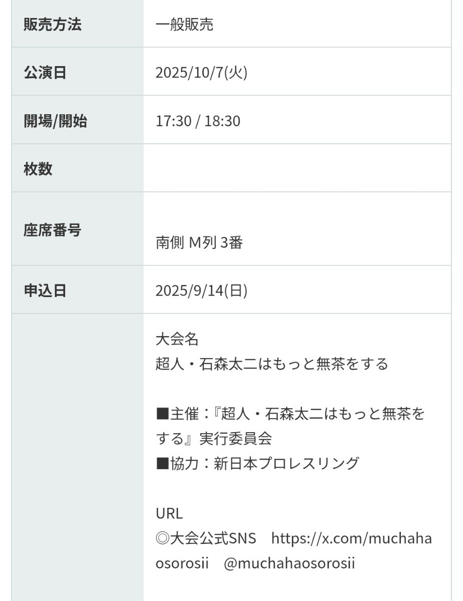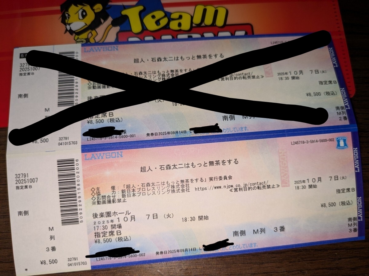 10月7日(火) 超人・石森太二はもっと無茶をする 後楽園ホール大会のチケットお譲り先を探しています。
