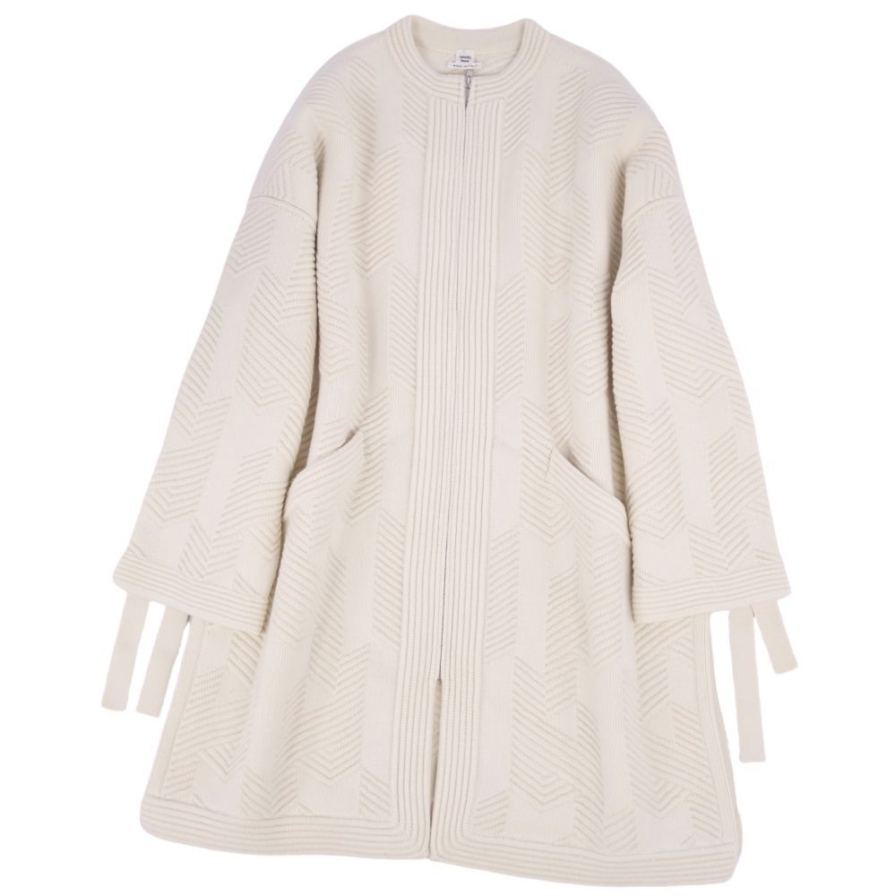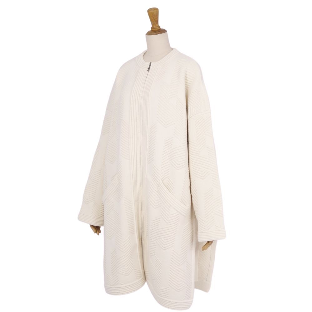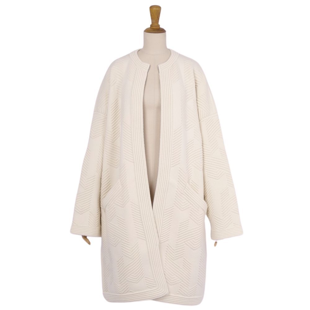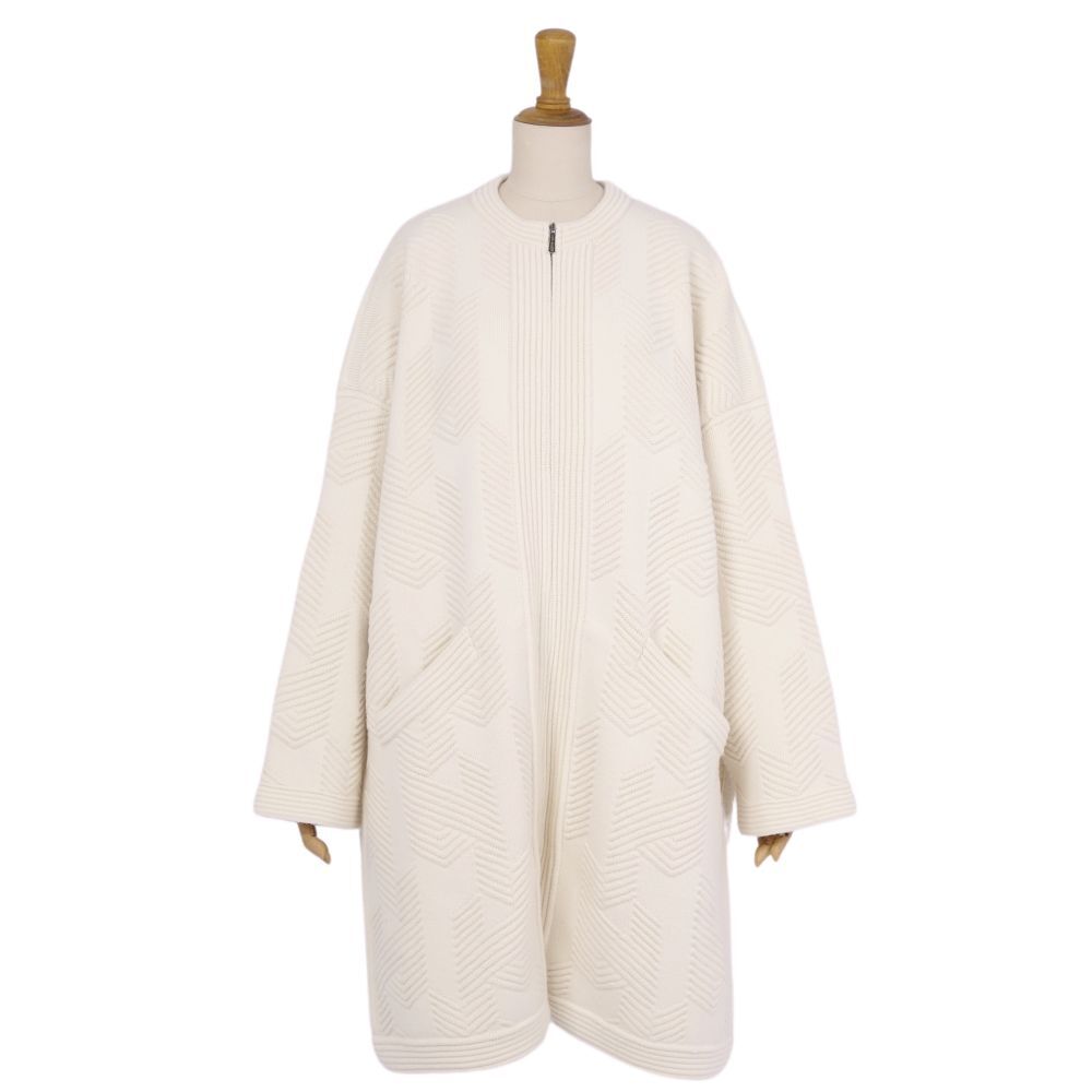 極美品 エルメス HERMES コート 23AW ロングコート ウール ニット ジップアップ アウター レディース 34(S) アイボリー |