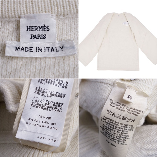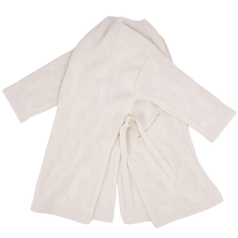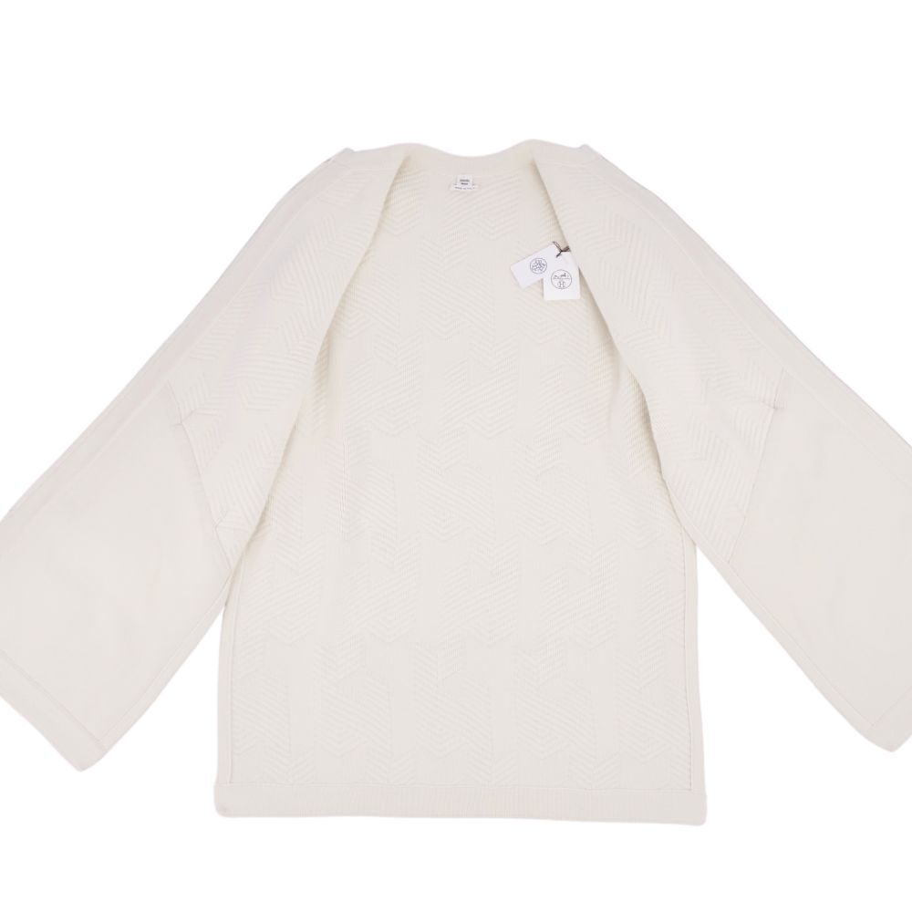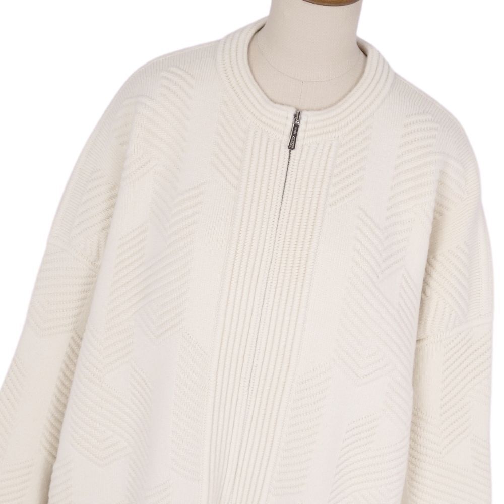極美品 エルメス HERMES コート 23AW ロングコート ウール ニット ジップアップ アウター レディース 34(S) アイボリー |
