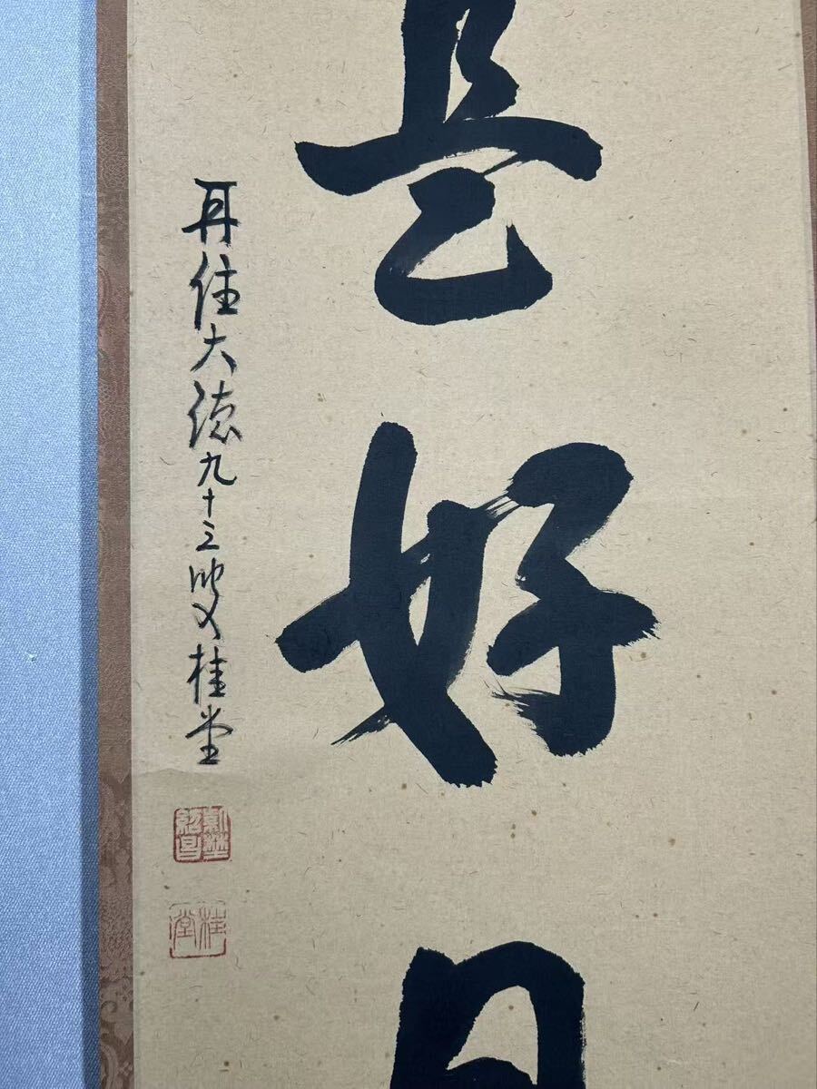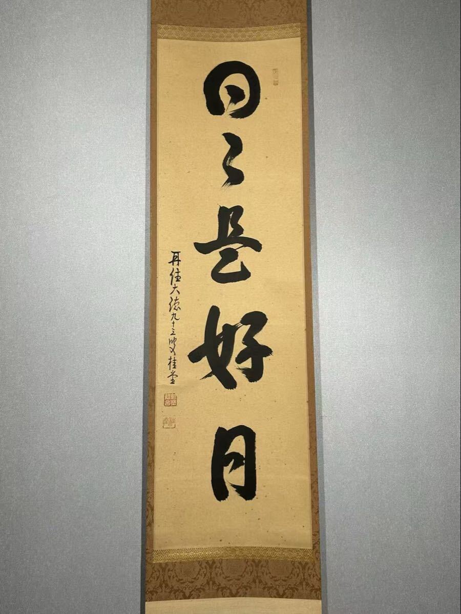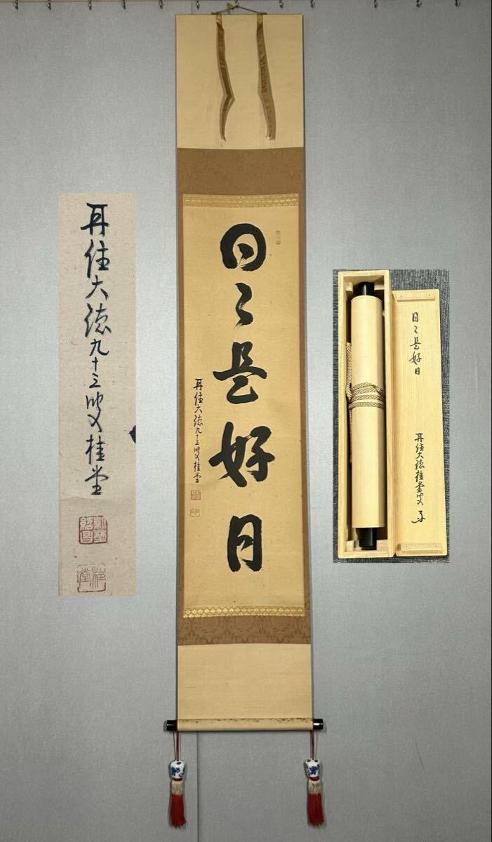 【模写】F-138掛軸 紙本 共箱 茶掛 茶道 茶道具 華道 花道具 吉口桂堂 臨済宗大徳寺派瑞峯院『日々是好日』