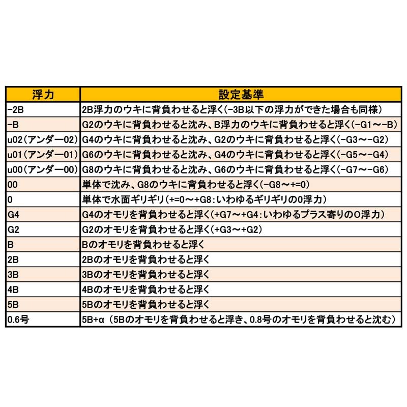 G2のウキに背負わせると沈み、B浮力のウキに背負わせると浮く(-G1~-B)
