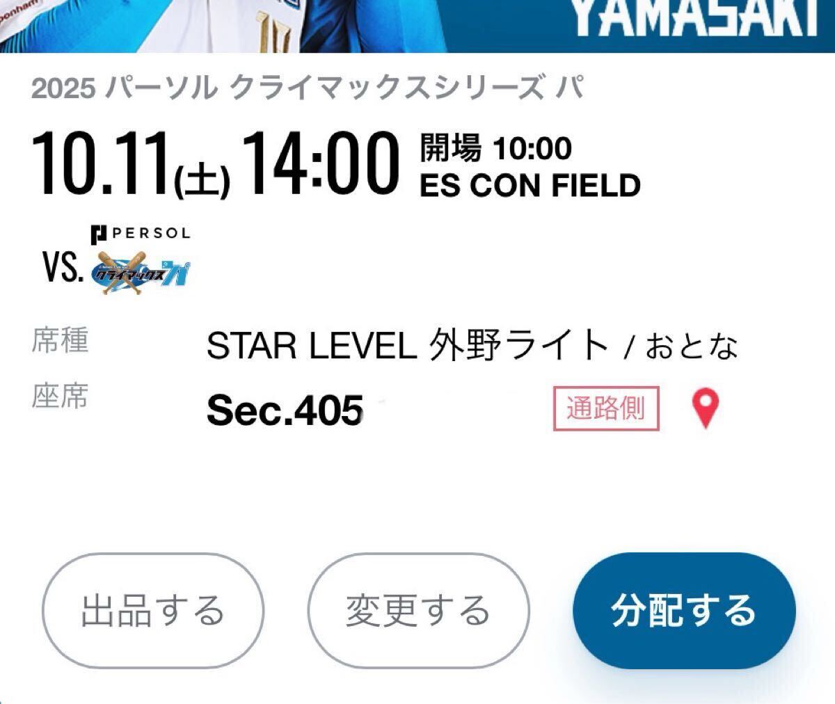 Sec405 10-13列目の通路側 数量1=2枚での落札となります