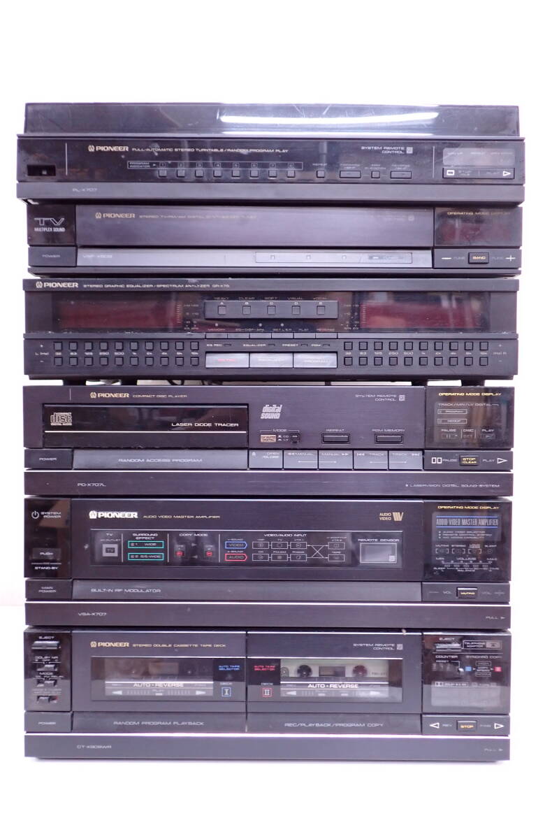 パイオニア システムコンポ 一式セット ターンテーブル アンプ スピーカー PL-X707 VSF-X909 GR-X70 PD-X707L CT-X909WR 通電及び簡単な音出しは確認済みです。 ターンテーブルのボタンが1つ欠落しています。 全ての機能を完全完璧に確認できていないため、要修理・要メンテナンス前提のジャンク品とお考えください。 |