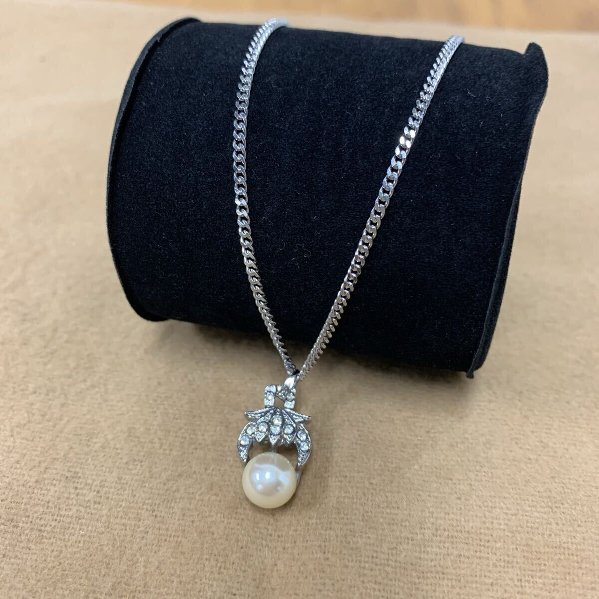 ・パール ネックレス ペンダント SILVER 刻印 シルバー 真珠 ラインストーン アクセサリー レディース 婦人 ファッション小物