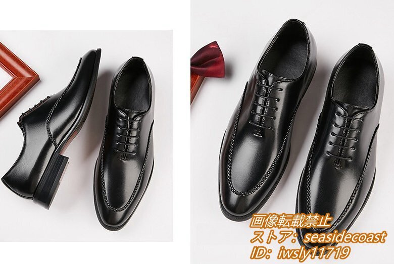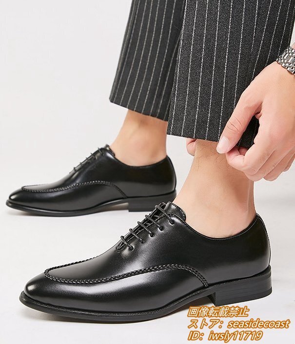 超美品◆メンズ レザーシューズ 本革 ビジネスシューズ ハンドメイド イギリス風 紳士靴 革靴 高級牛革 個性 通勤 上質 ブラック 24.5cm