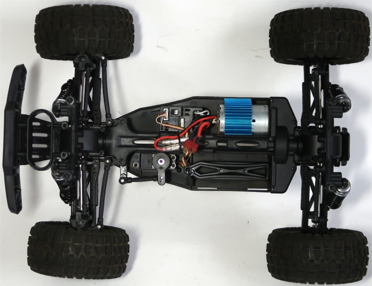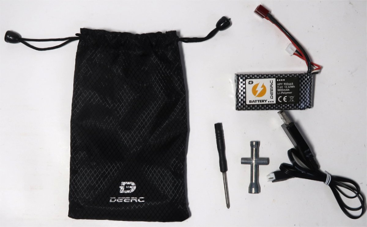 出品は画像の物のみです。他に必要なものがあればご自分でご用意ください。充電用のUSBアダプター(5V-2A)とプロポの電池があればすぐに走行は可能です。ラジコンカーは使用品ですので汚れや所々に擦り傷あります。ボディには汚れや擦り傷あります。シャーシは所々に汚れや傷はありますが、ひどいダメージはないです。その他に私が見る限りは特にひどいダメージは確認出来ませんでした。付属のバッテリーを充電して、プロポに電池を入れてテストをしました。操作はできましたし、特に問題なく動作しました。バッテリーはすぐに切れることはなかったのですが、消耗品ですのでいかなる状態であったとしてもノークレームです。ダンパーはオイルが入っていないか、漏れがあったとしてもノークレームです。出品前にもきちんと基本的な事は問題ないかチェックした上で出品していますが、発送後になにか問題がありましてもサポートは出来ませんし、返品や苦情は一切受け入れられませんのでそれを納得した上で御入札下さい。