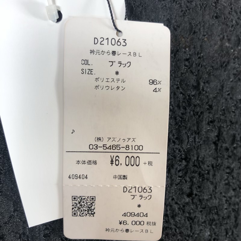 商品名 | アズノゥアズドゥバズ as know as de base トップス 長袖 レース 衿元から春レース ブラック タグ付き サイズ表記なし 871747 |