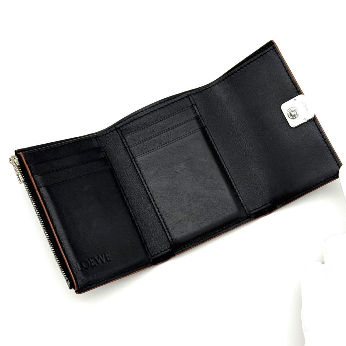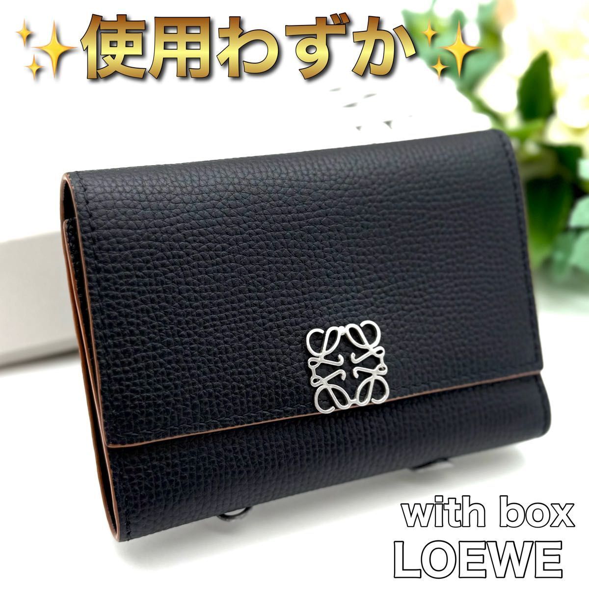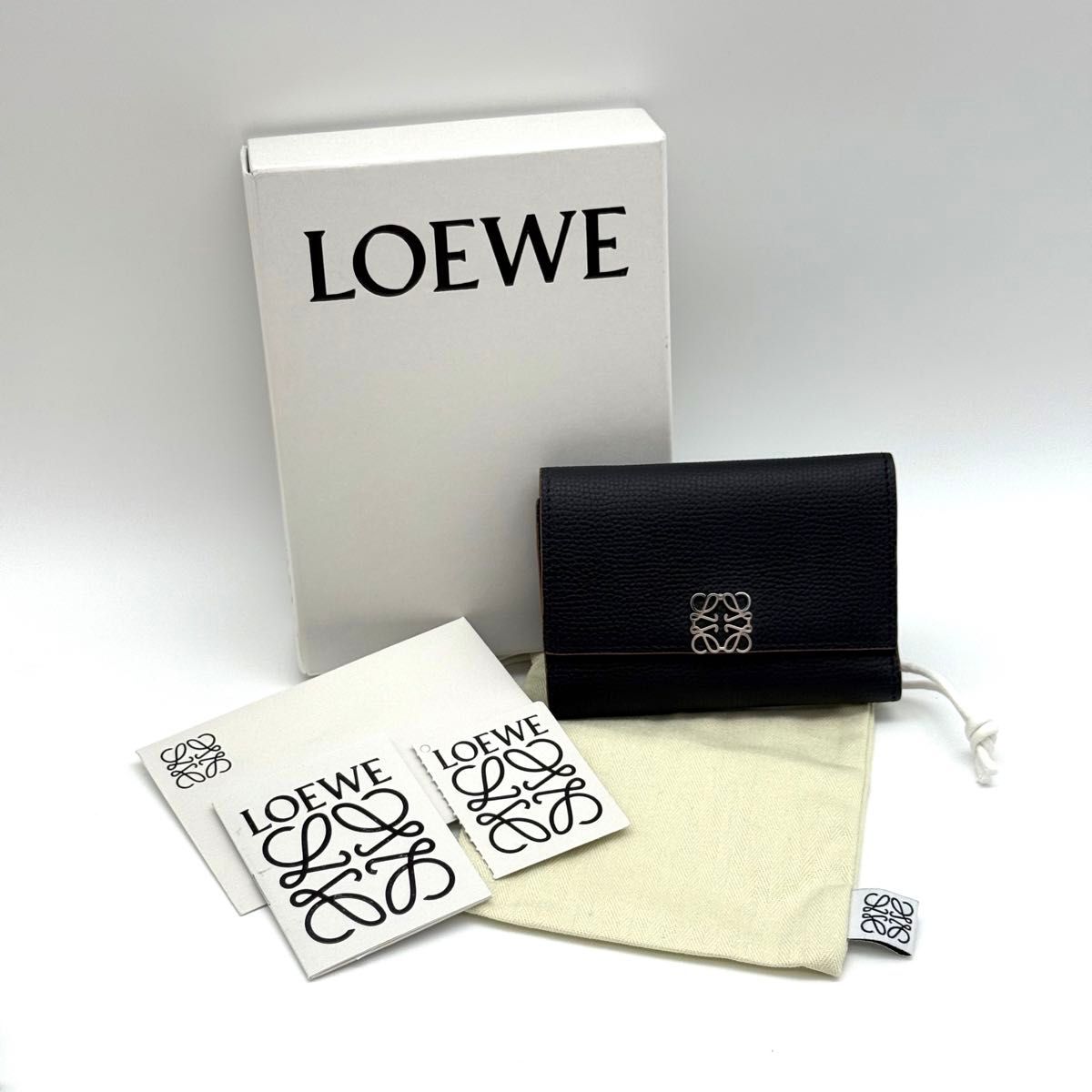 使用わずか! LOEWE ロエベ アナグラム バーディカル ブラック 黒 レディース コンパクト 三つ折り財布 N52