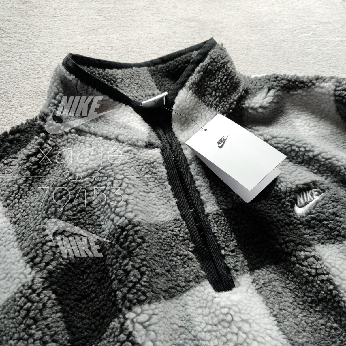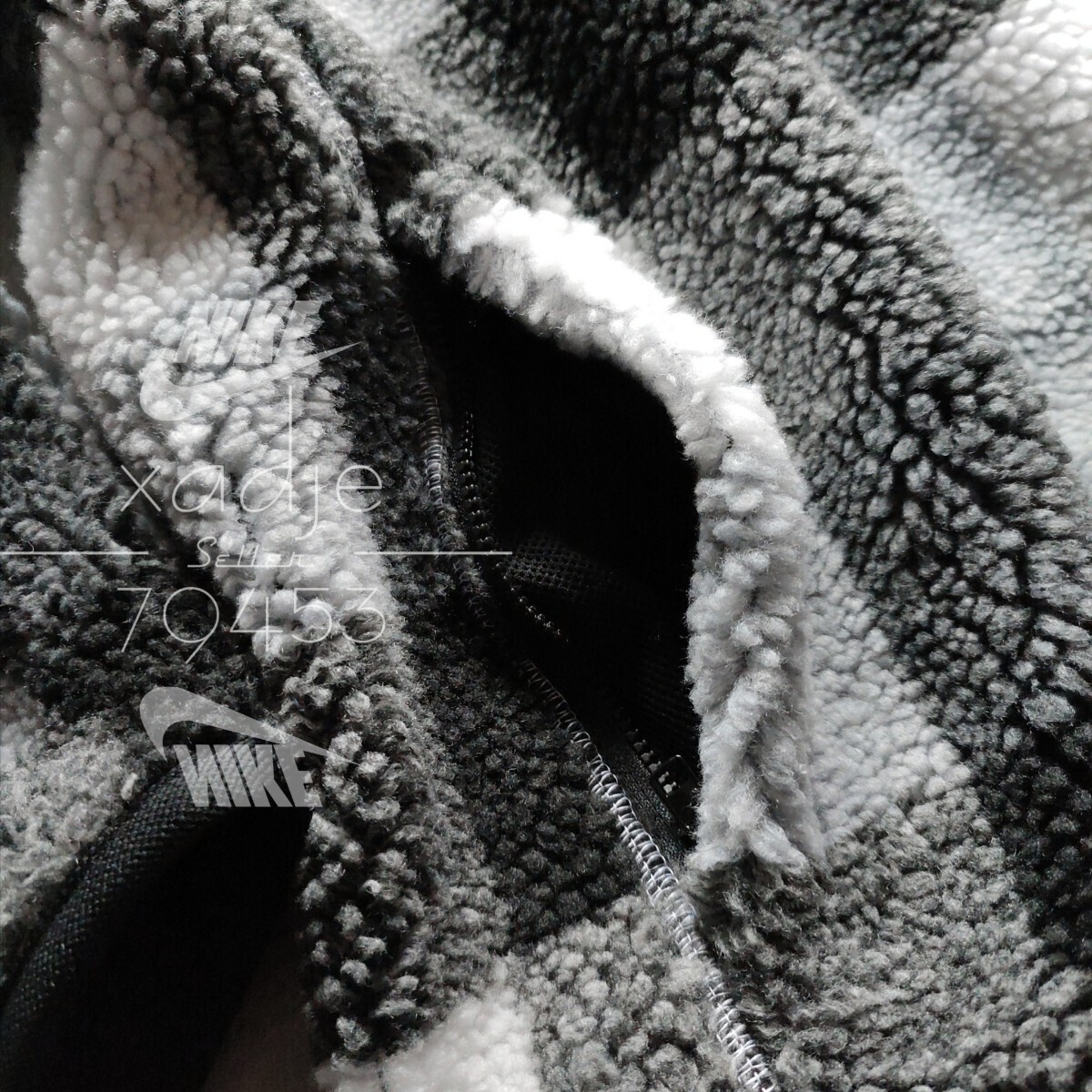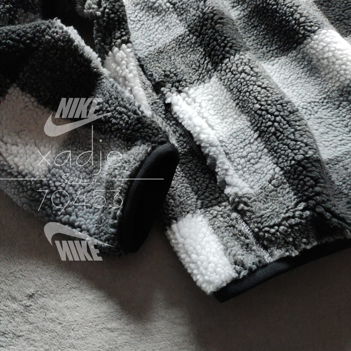 新品 正規品 NIKE ナイキ ウィンター シェルパ チェック ボア ジャケット 黒 ブラック 灰 グレー 白 ロゴ 刺繍 ゆるめ 定価15290円 2XL XXL