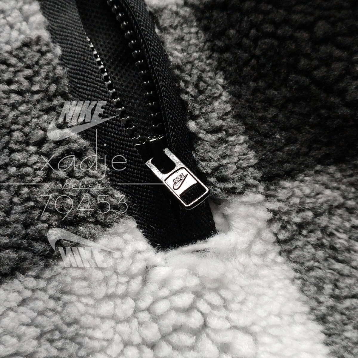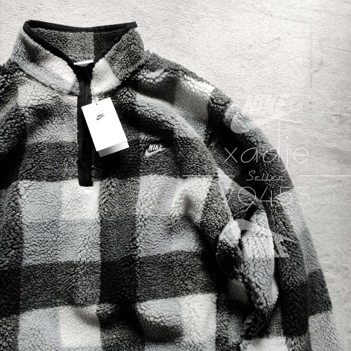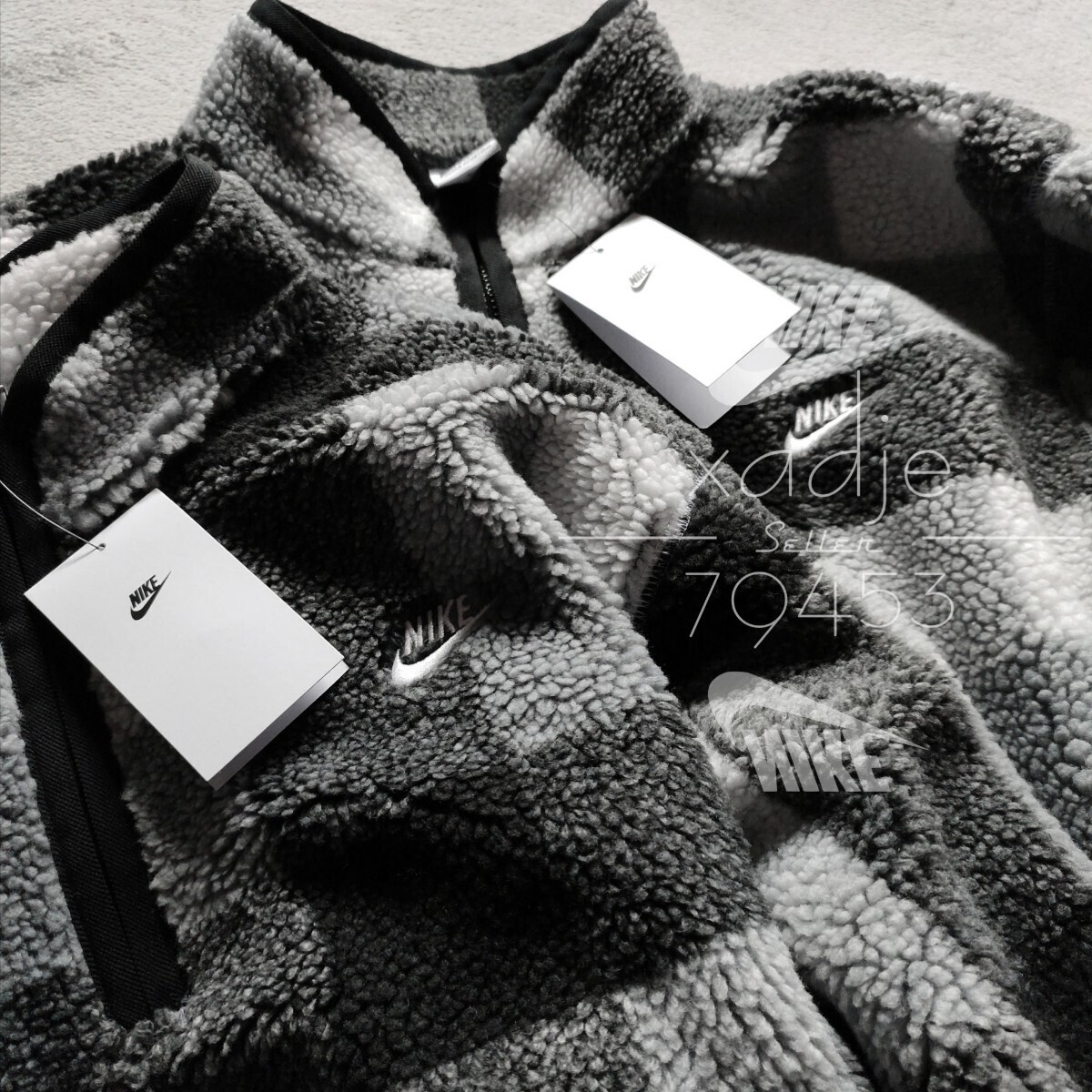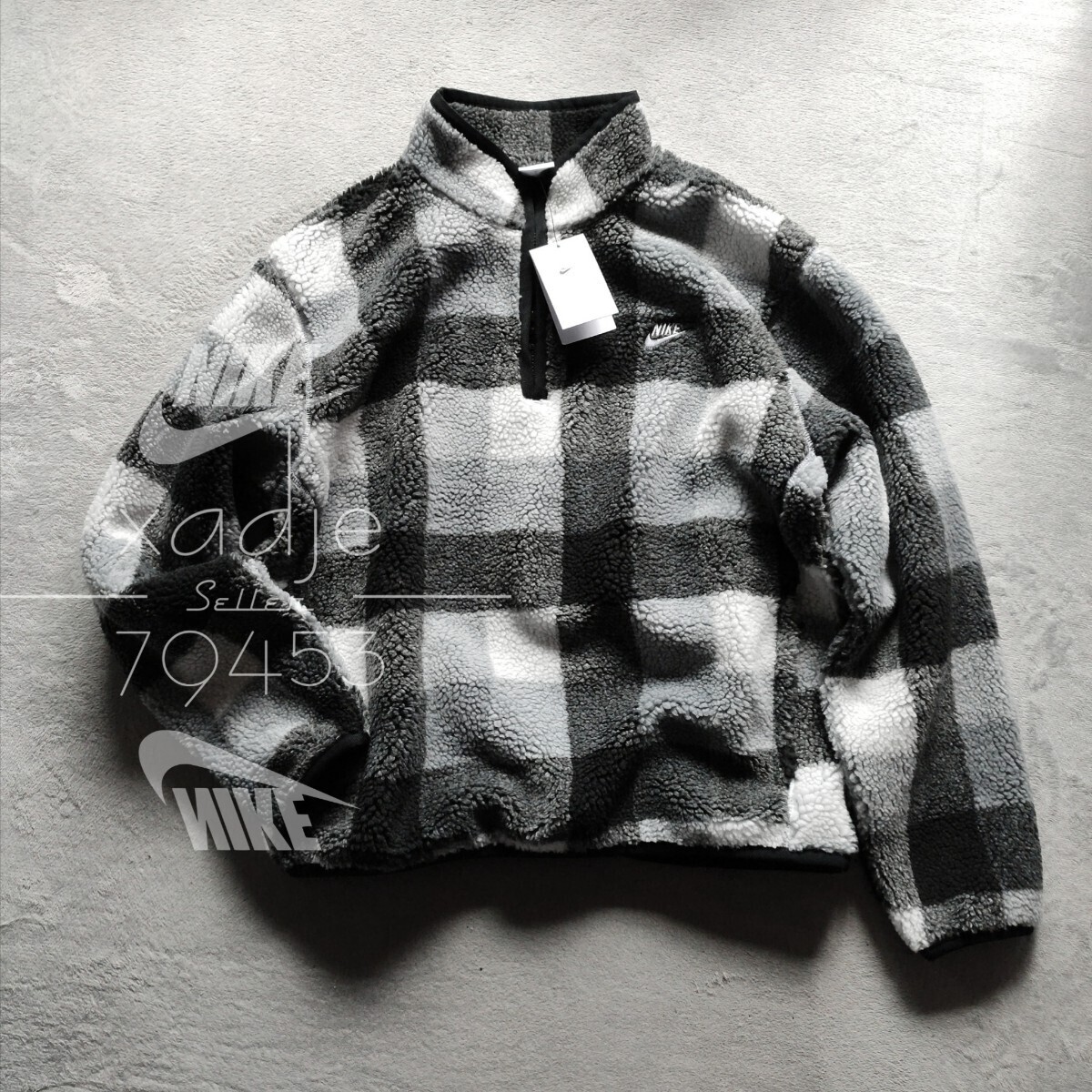 新品 正規品 NIKE ナイキ ウィンター シェルパ チェック ボア ジャケット 黒 ブラック 灰 グレー 白 ロゴ 刺繍 ゆるめ 定価15290円 2XL XXL