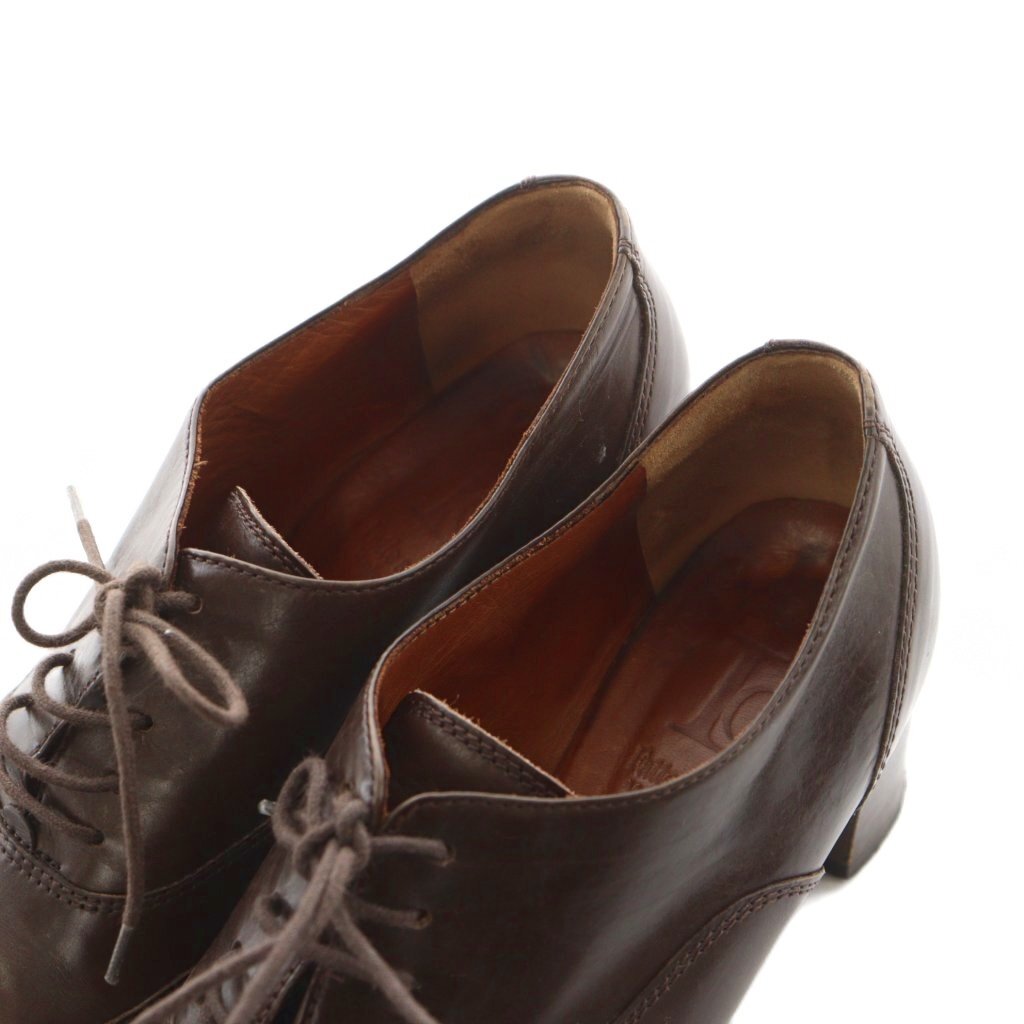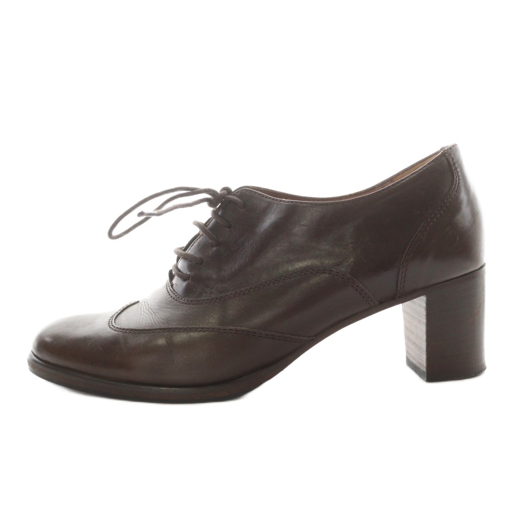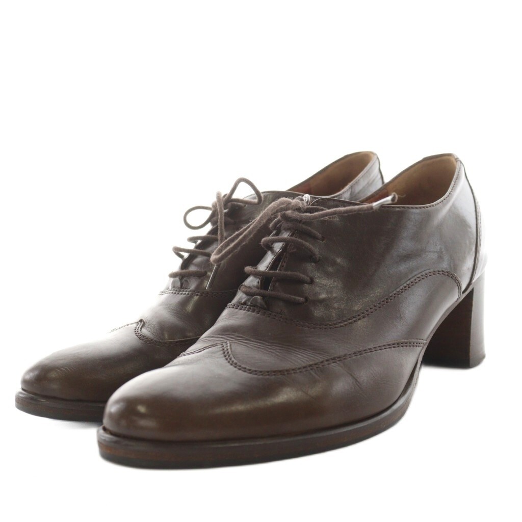 ファットアマーノ Fatte a mano パンプス チャンキーヒール アーモンドトゥ ウイングチップ レザー 37 茶 ブラウン /AN4 レディース