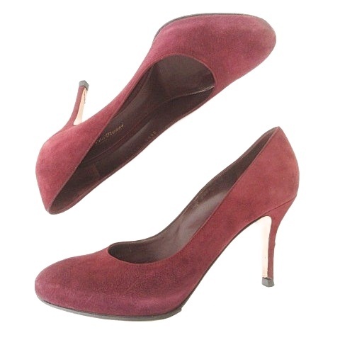 ジャンヴィトロッシ Gianvito Rossi 美品 箱付き 保存袋あり スエード ヒール パンプス イタリア製 38.5 約25.5cm ワインレッド レディース