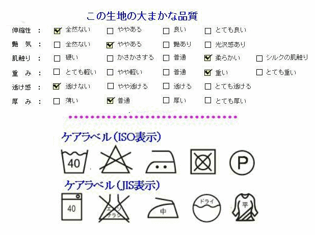 | 写真について | 1枚目は、この生地で作成したサンプルです 2枚目~3枚目は風合いや光沢感がわかるように撮影しました 5枚目はシャンタン面の拡大撮影 8枚目のようなロール巻きからカットします 発送は梱包サイズを抑えるためタタミです |