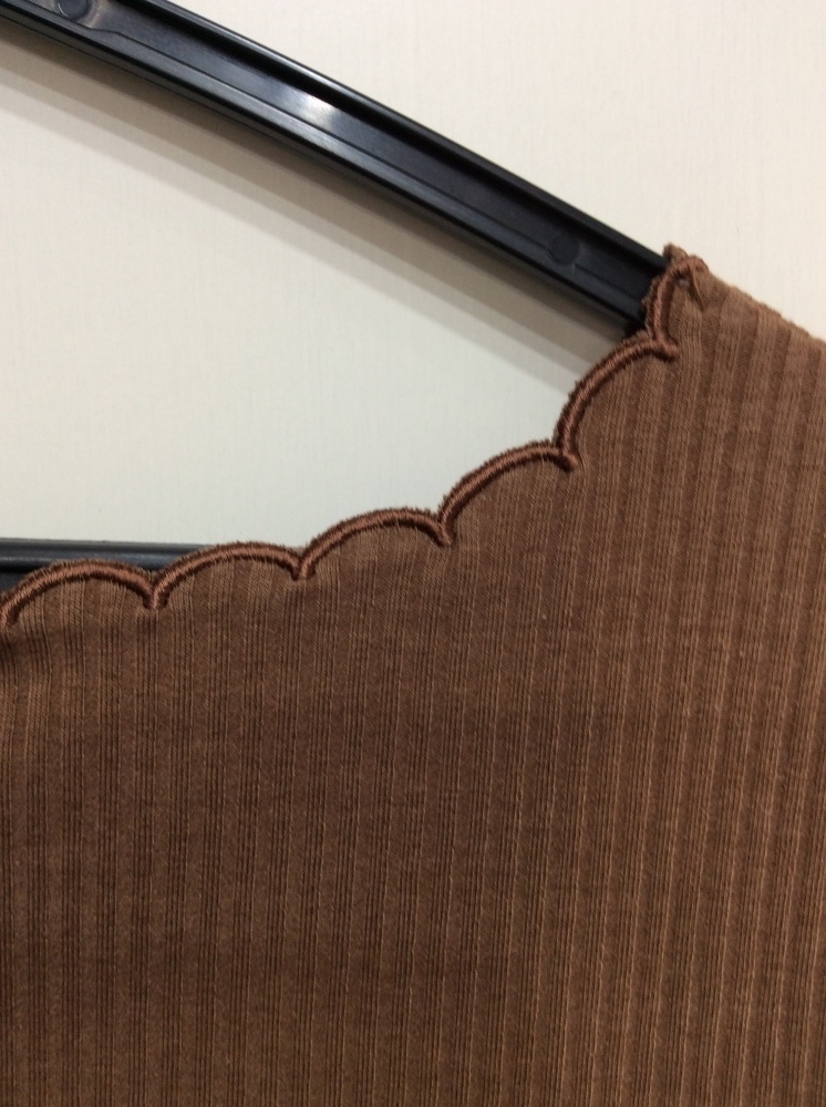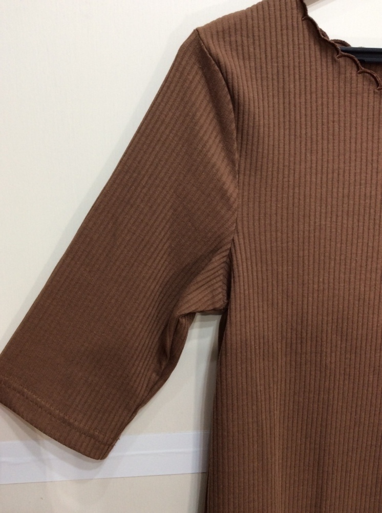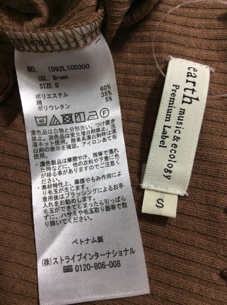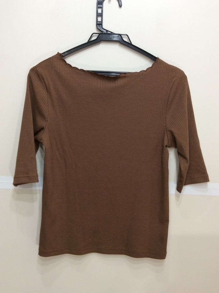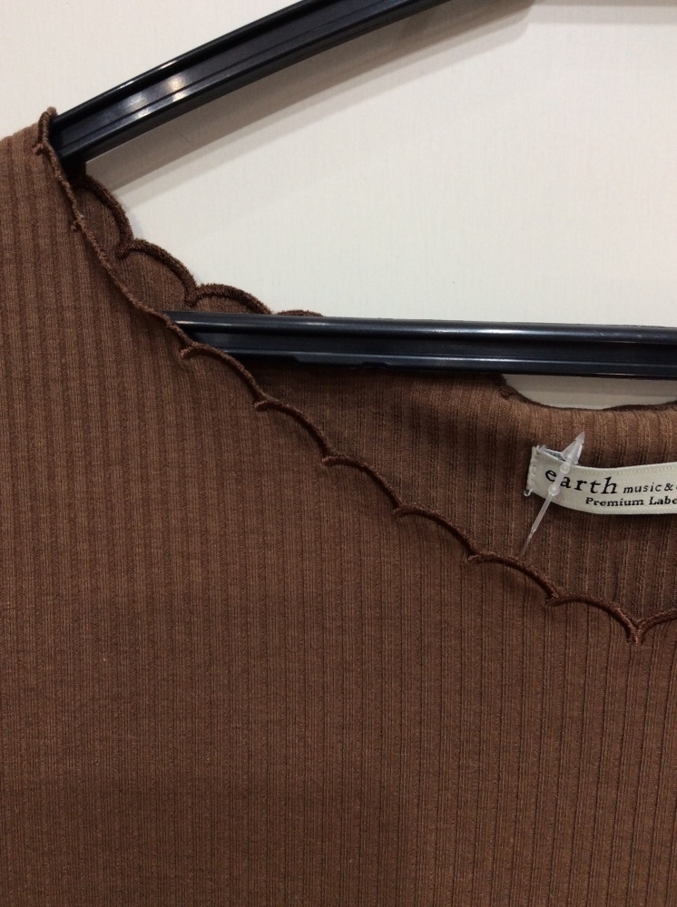 管理番号:63^118212 アースミュージック&エコロジー 五分袖くらいリブカットソー 茶系色 表示サイズ:S 実寸(参考)