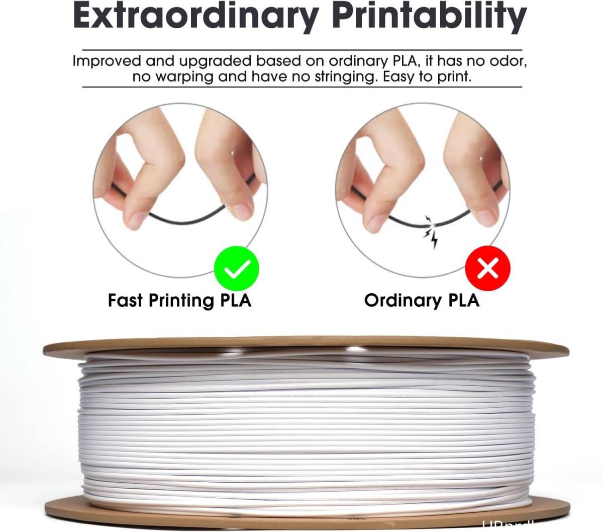 【簡単に印刷できる】:通常のPLAフィラメントと比較して、eSUN ePLAはより高い精度を持ち、ワーピングが少なく、もろさが少なく、簡単に折れにくい特徴があります。また、溶けやすく、ノズルやエクストルーダーの詰まりなくスムーズにフィードされるため、高い印刷成功率と良好な成形効果が保証されます。
