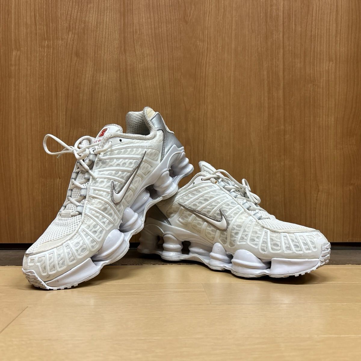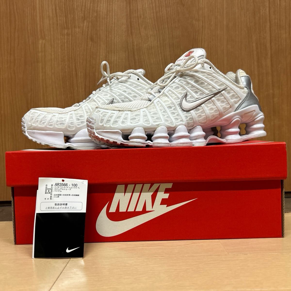 NIKE SHOX TL ナイキ ショックTL AR3566 100 WHITE-METALLIC SILVER-MAX ORANGE 26,5cm USED