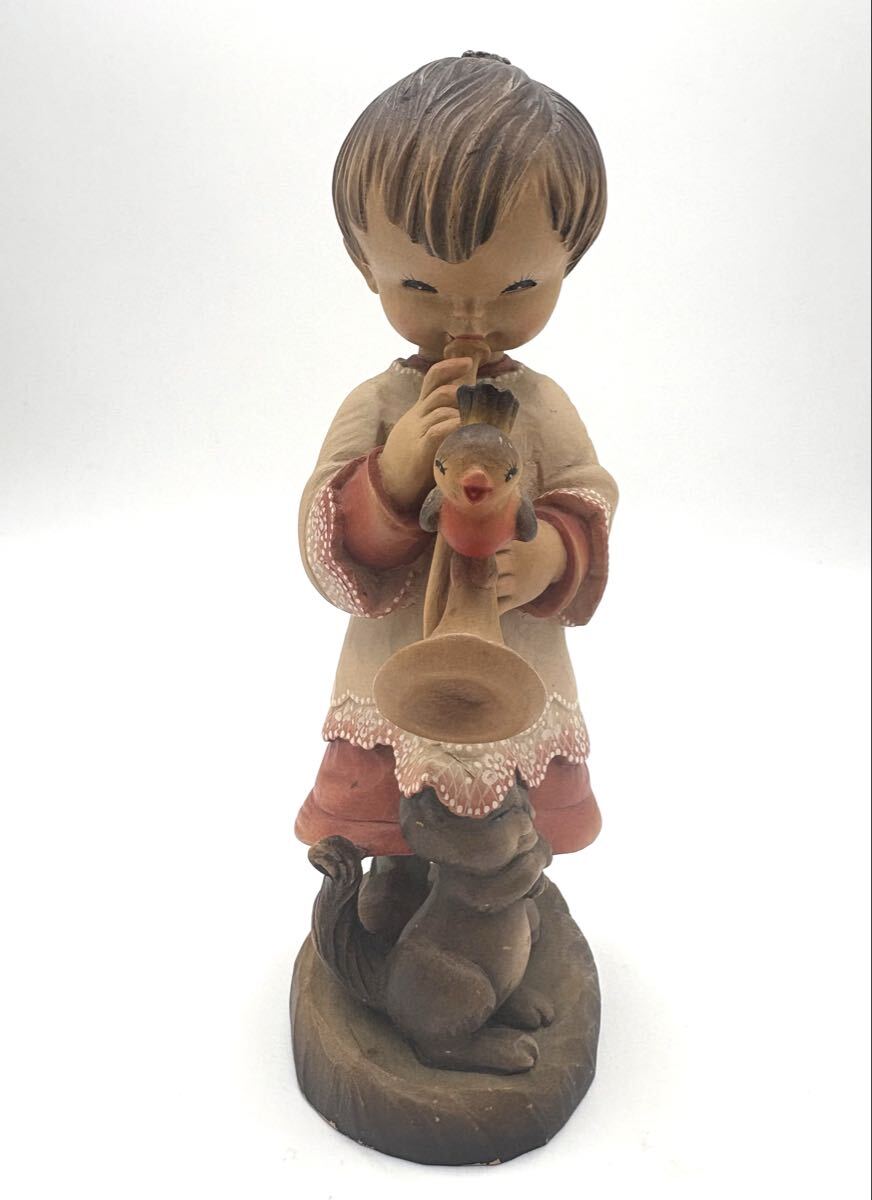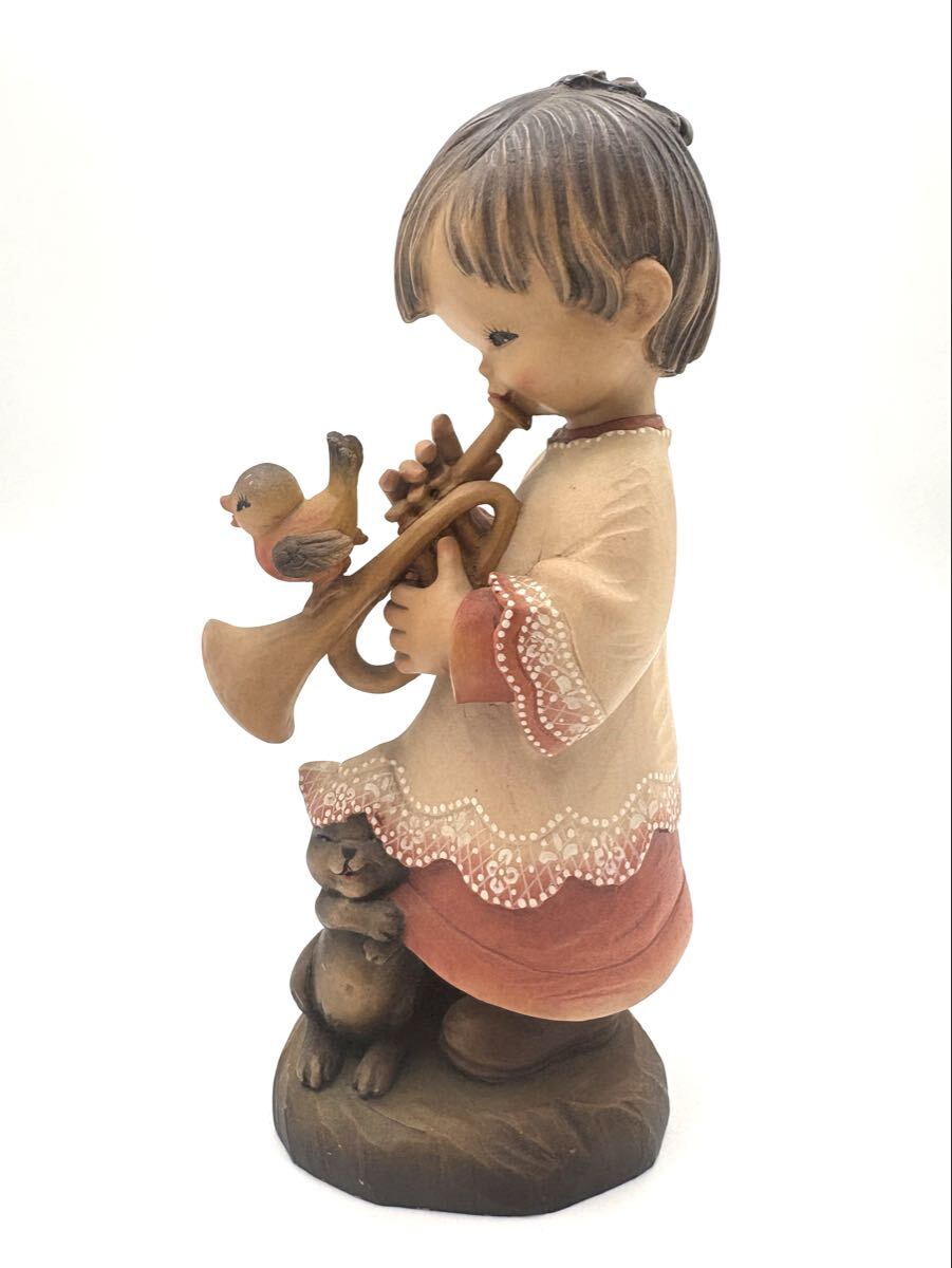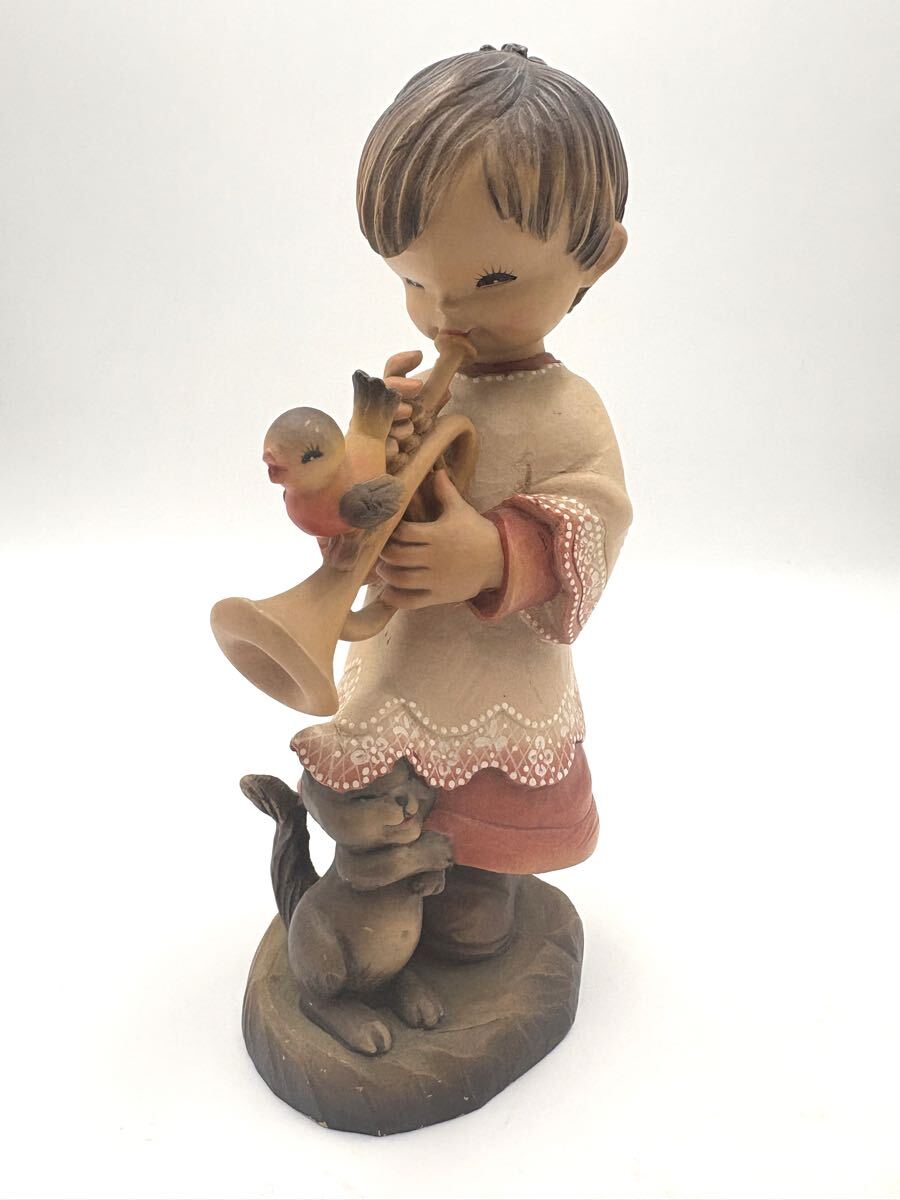 商品名 : ANRI アンリ トランペットを吹く 少年 小鳥 猫 ホセ・フェランディス アンリ人形 約25cm 木彫り人形