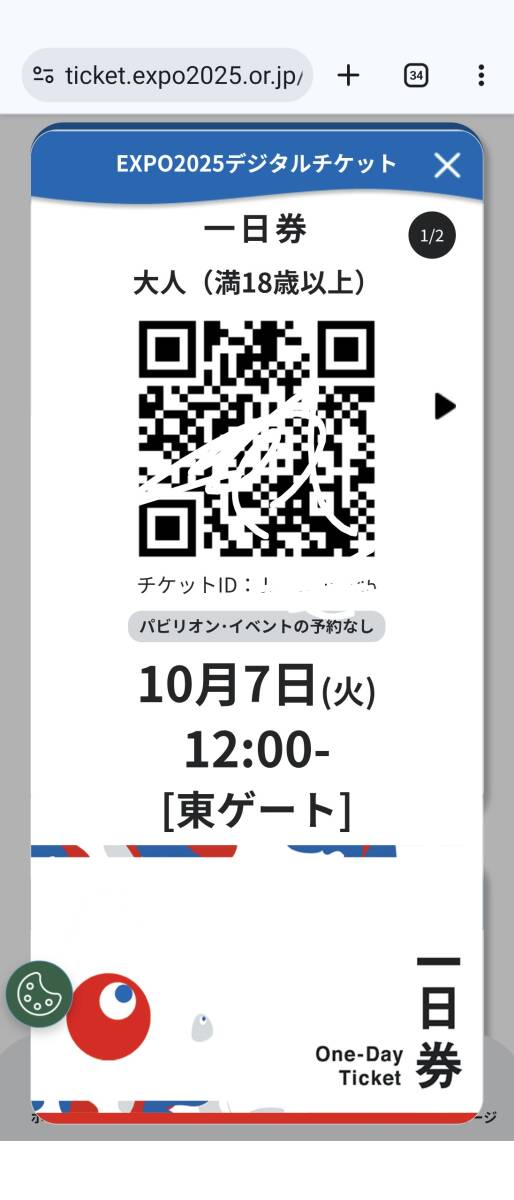 商品について:大阪関西万博入場チケット10/7(火)12時 東ゲート大人2枚(1日券)での販売です。