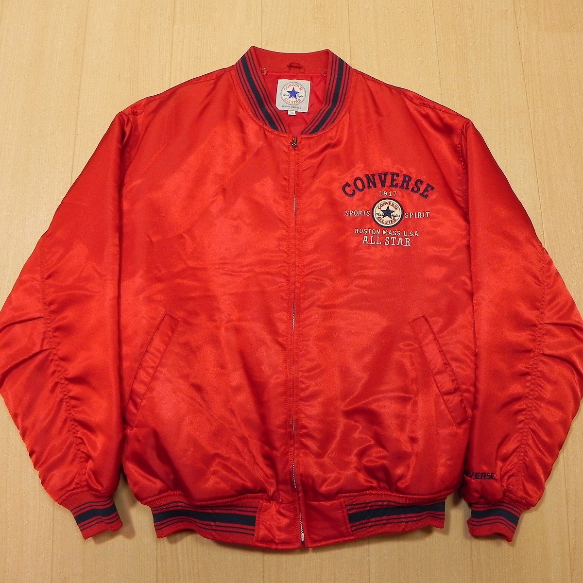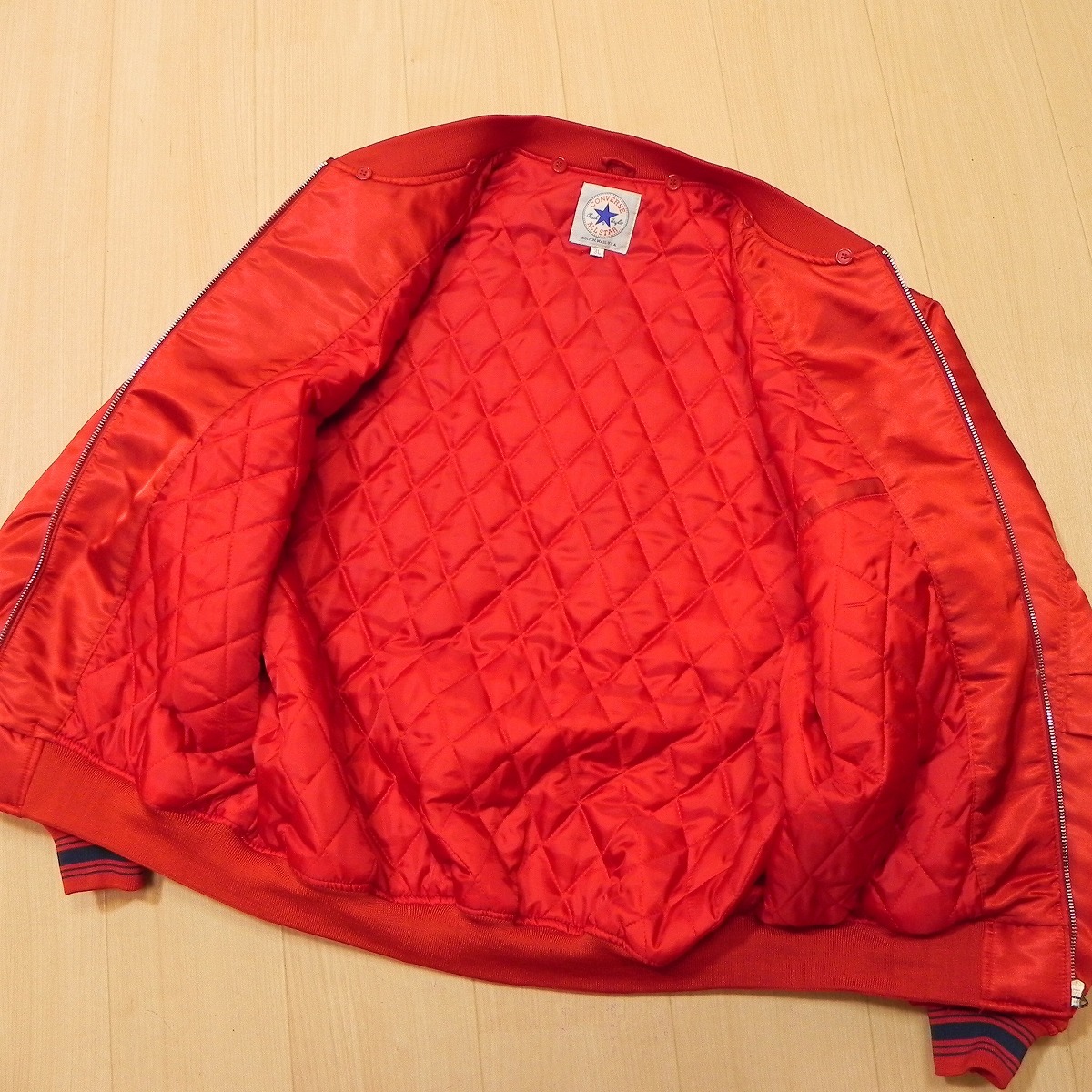★ 大きいサイズ 3L ★ 90s converse コンバース オールスター バッグロゴ刺繍 ナイロンスタジャン キルティング裏地 赤系 古着 ★d