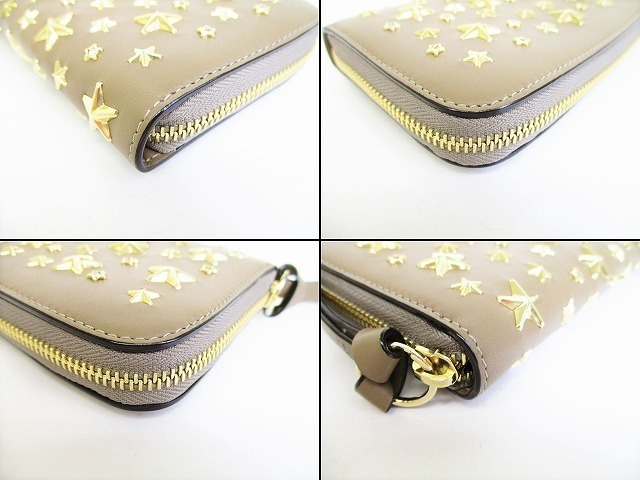 8365 【展示保管品】 Jimmy Choo ジミーチュウ ゴールドメタル ラインストーン スタッズ レザー ラウンドファスナー 長財布 展示保管品でとても綺麗な状態のお品です。(未使用品ではありますが、展示品の為一見分かりにくいささいな傷や汚れはご了承くださいませ。) 【ブランド】Jimmy Choo 【カラー】ライトモカ 【素材】レザー 【サイズ】幅:約19cm 高さ:10cm 奥行き:約2cm ※あくまでも実寸なので多少の誤差はあるかもしれませんのでご了承ください。 【参考定価】94,600円 【製造刻印】- 【型番】FILIPA 【機能】札入れ×2、小銭入れ×1、カード入れ×8、ポケット×2 【付属品】ギャランティーカード、取扱説明書、保存袋、箱 【商品状態 】S ランク |