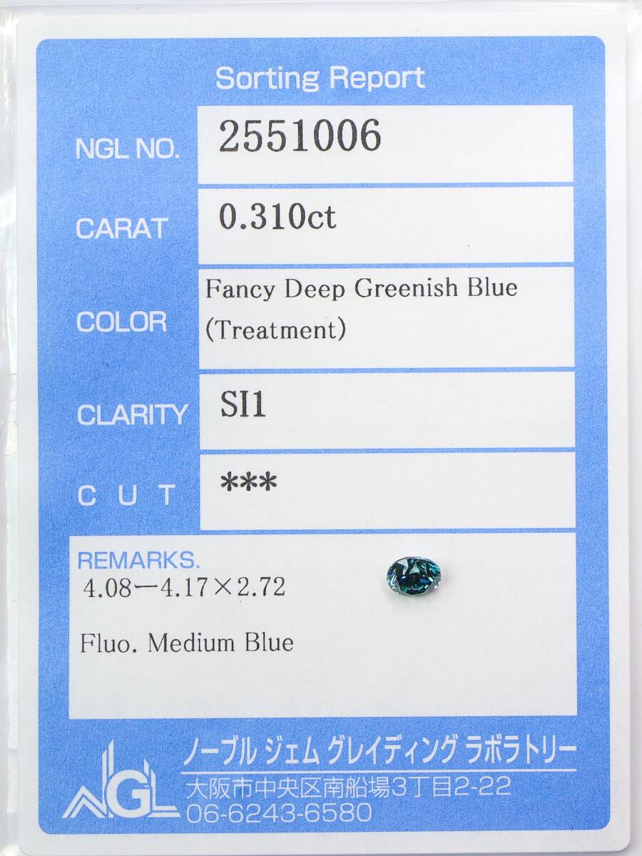 0.310ct 天然ダイヤ FANCY DEEP GREENISH BLUE(トリート)SI1