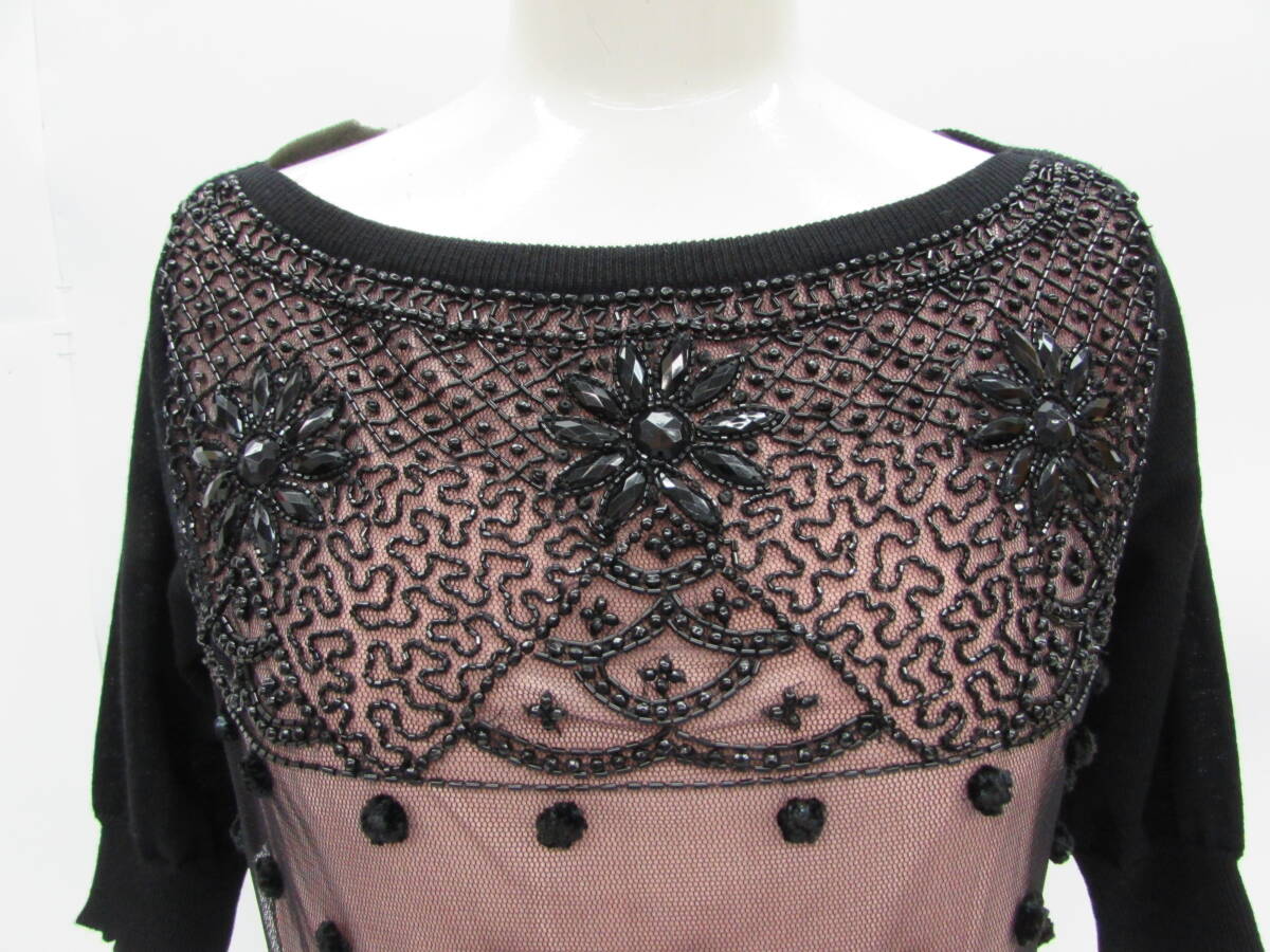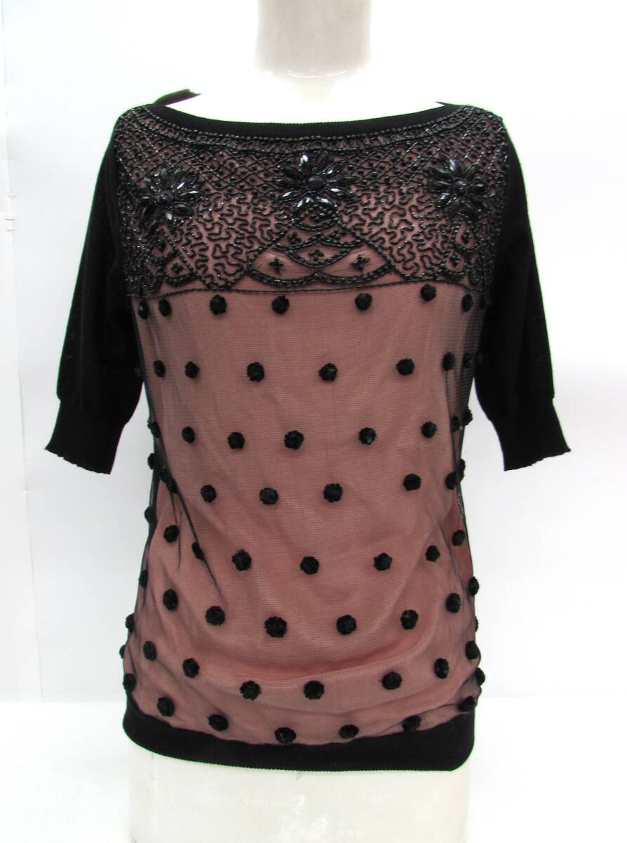 | Blumaline ブルーマリン サマーニット ビーズ シアー ブラック×ピンク 五分丈 イタリア製 レディース サイズ40 |