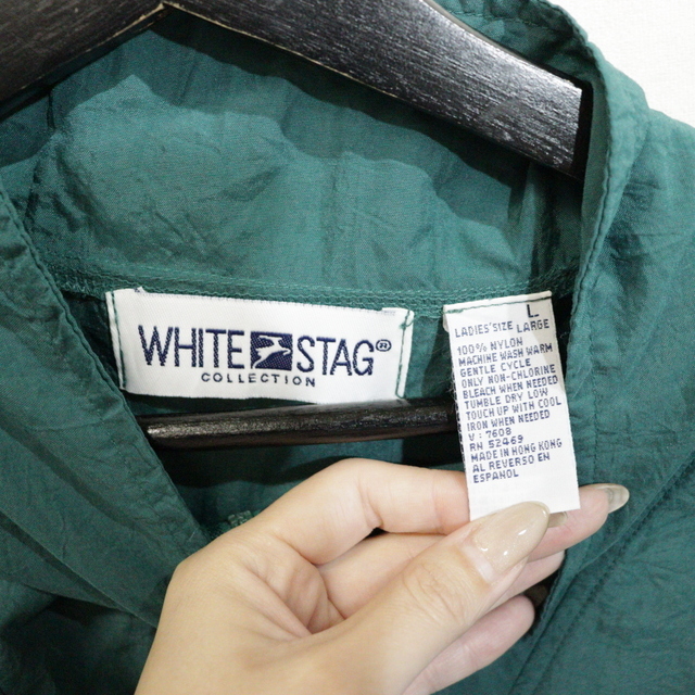 商品名 n940 90sビンテージ WHITESTAG ナイロンジャケット■1990年代製 表記Lサイズ レディース グリーン ハーフジップ プルオーバー アメカジ