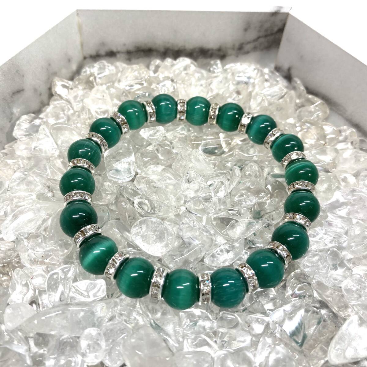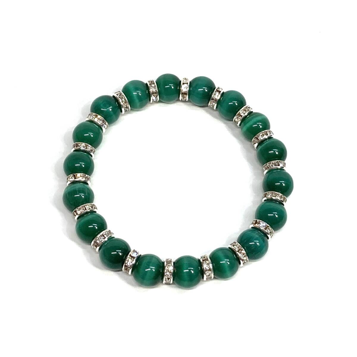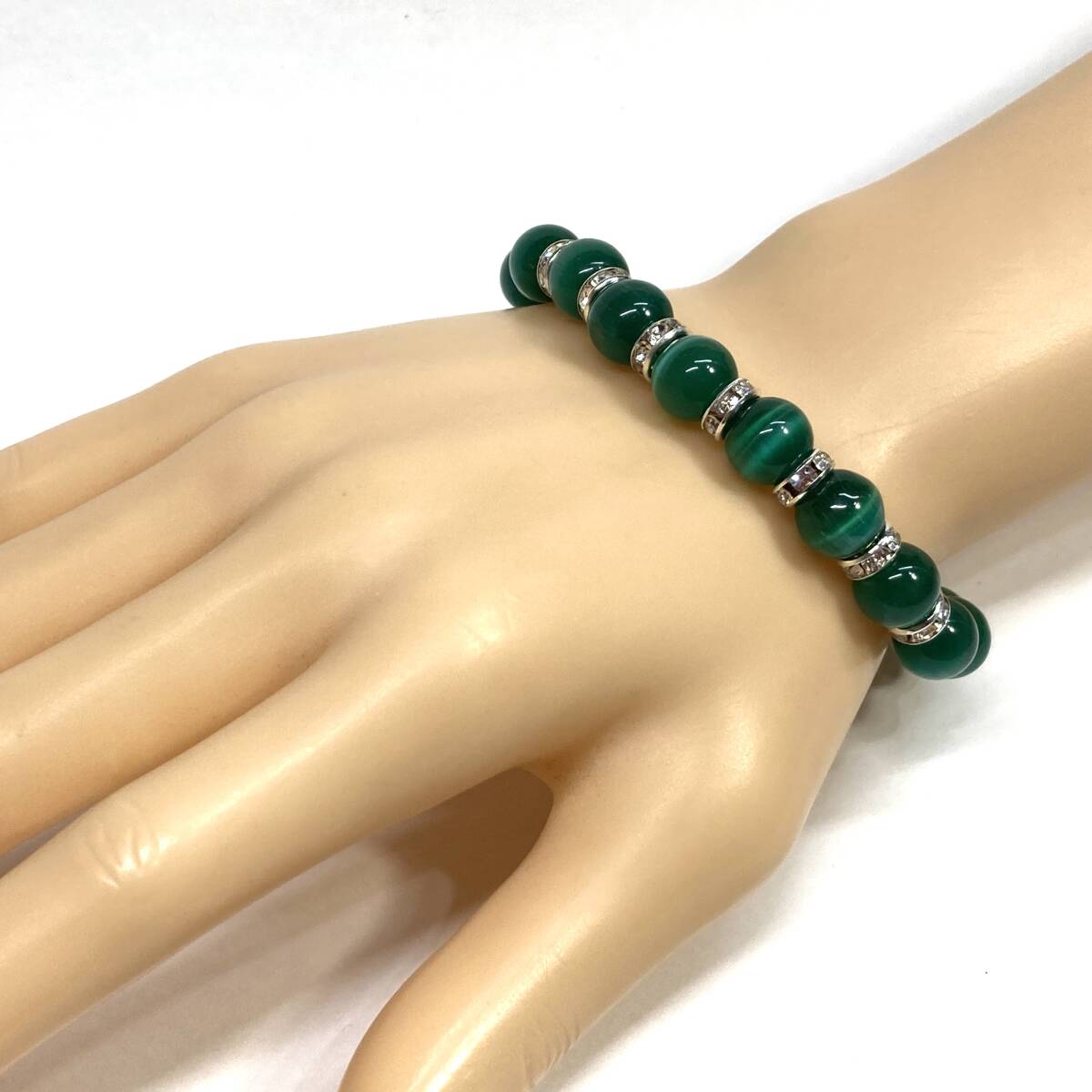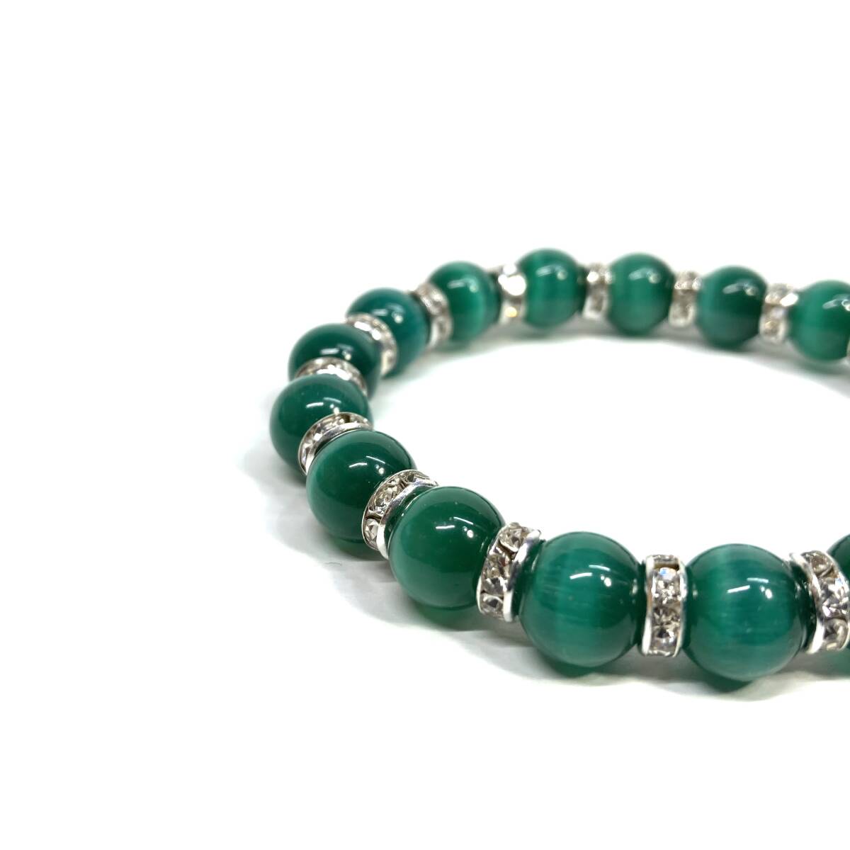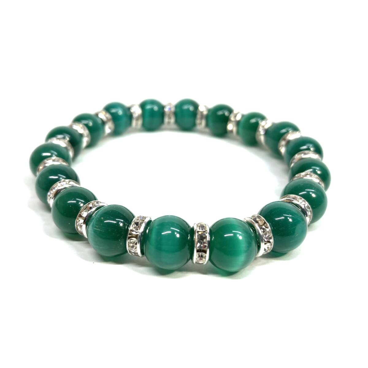 キャッツアイ(ダークグリーン) パワーストーン ブレスレット 10mm (シルバー) 数珠ブレス メンズ・レディース 男性 女性 幸運 開運 浄化