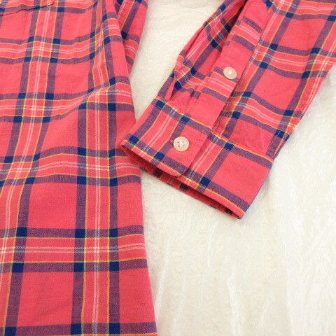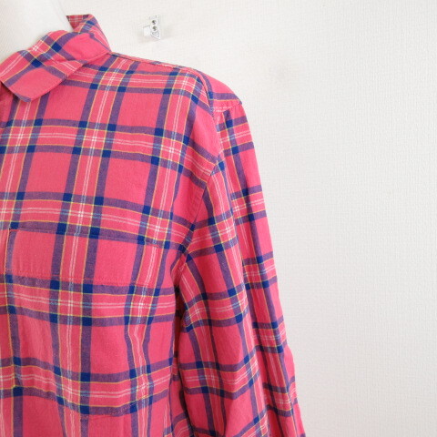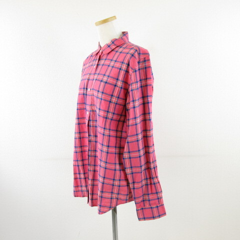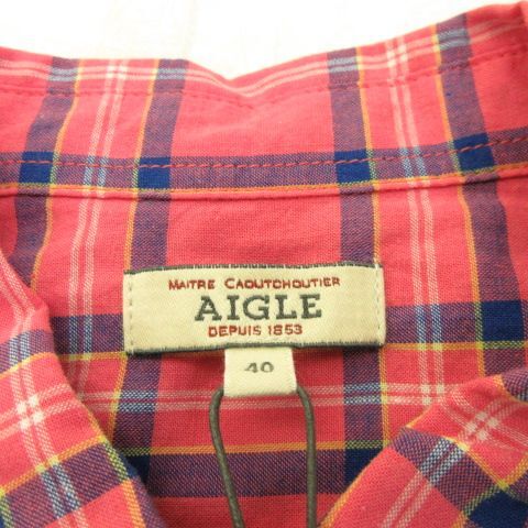 未使用品 エーグル AIGLE チェックシャツ 長袖 ピンク 青 40 *A215 レディース