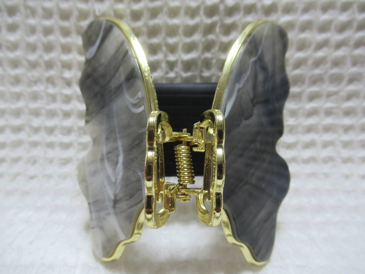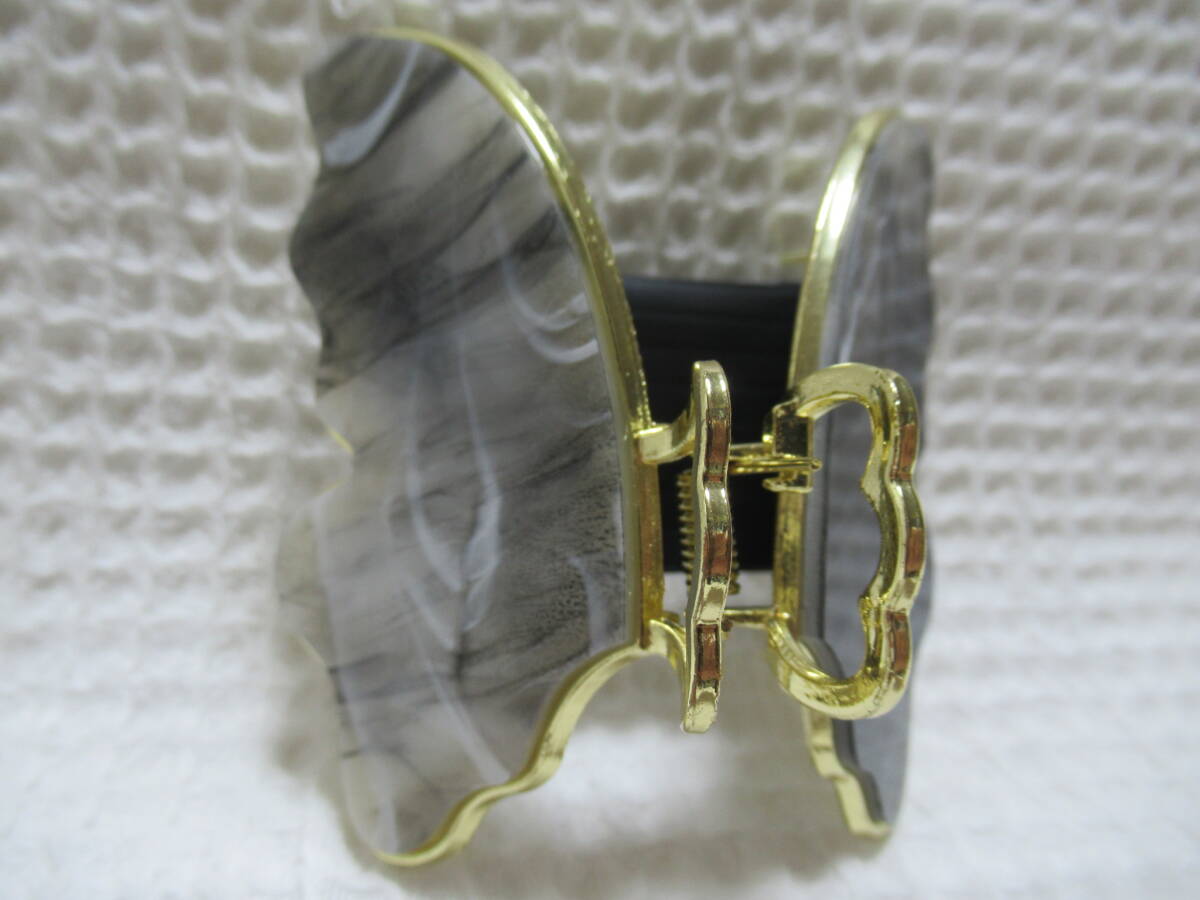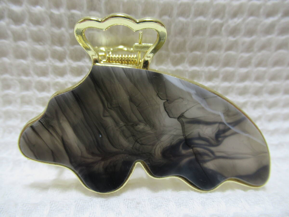 アクリル系付き ゴールドメタル蝶型バンスクリップ  ブラック・ホワイト系