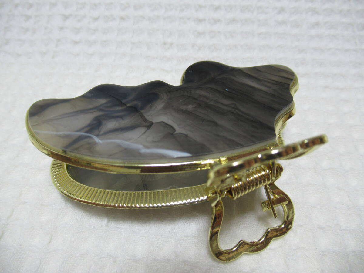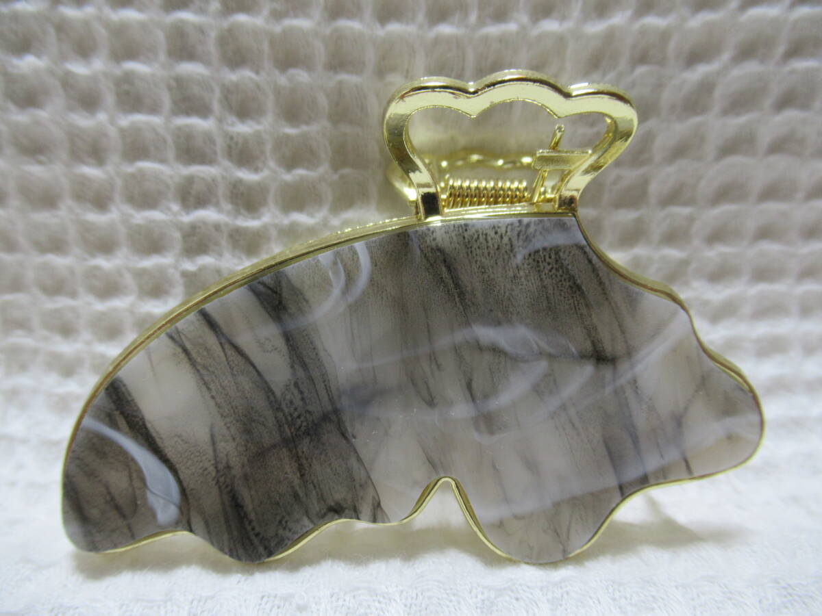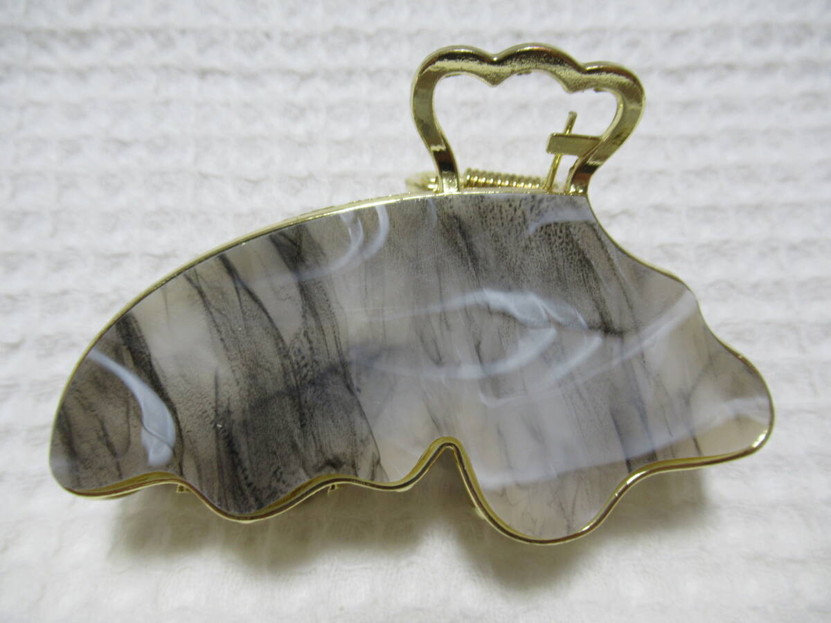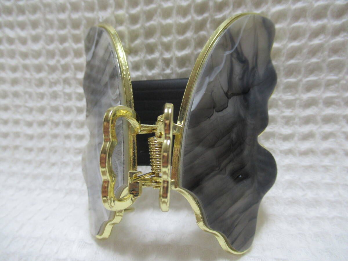 アクリル系付き ゴールドメタル蝶型バンスクリップ  ブラック・ホワイト系