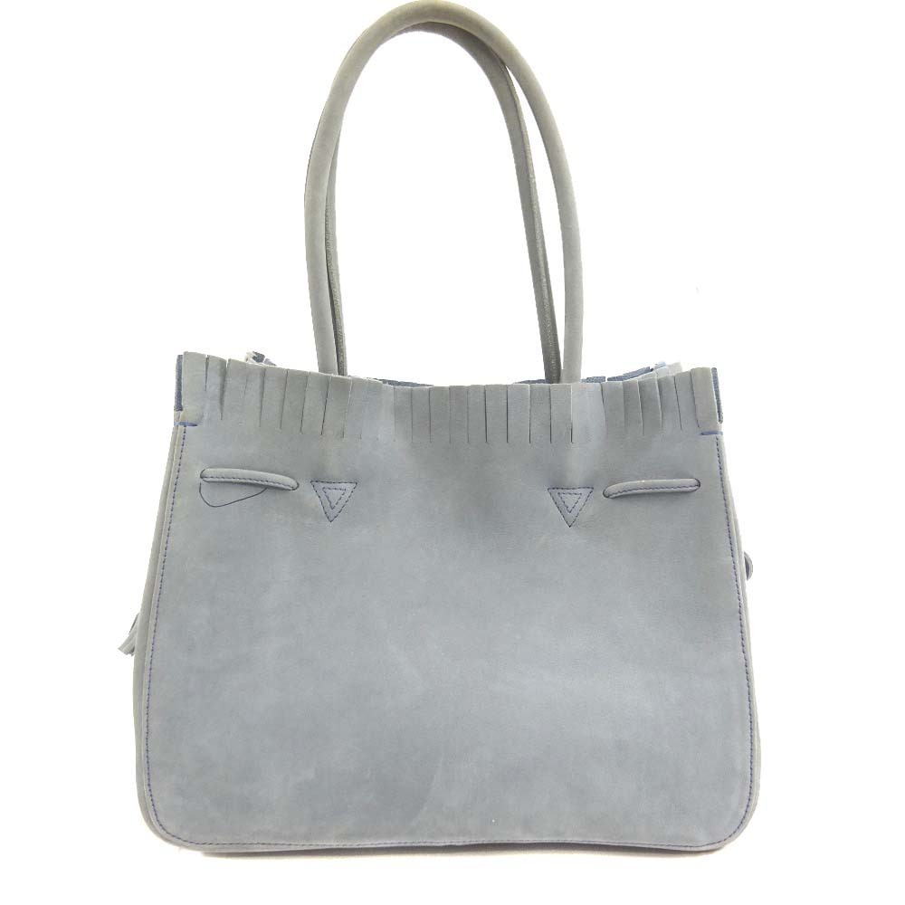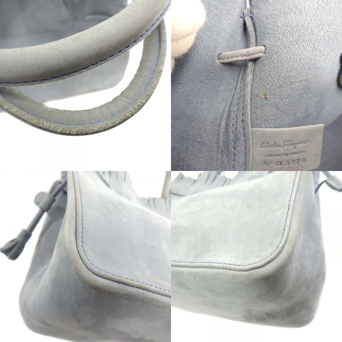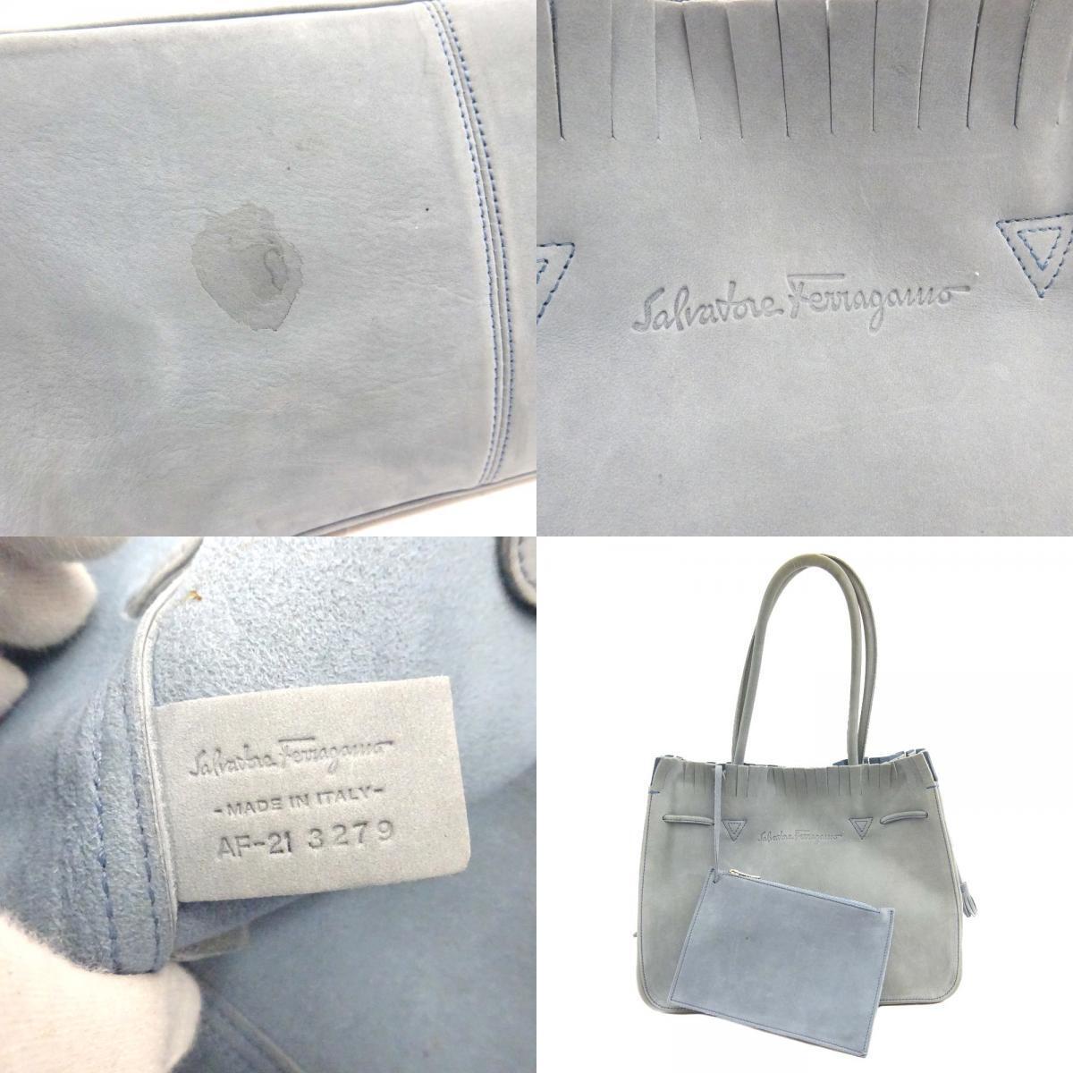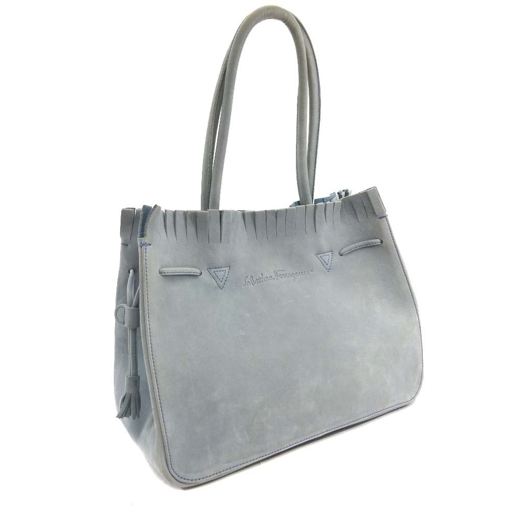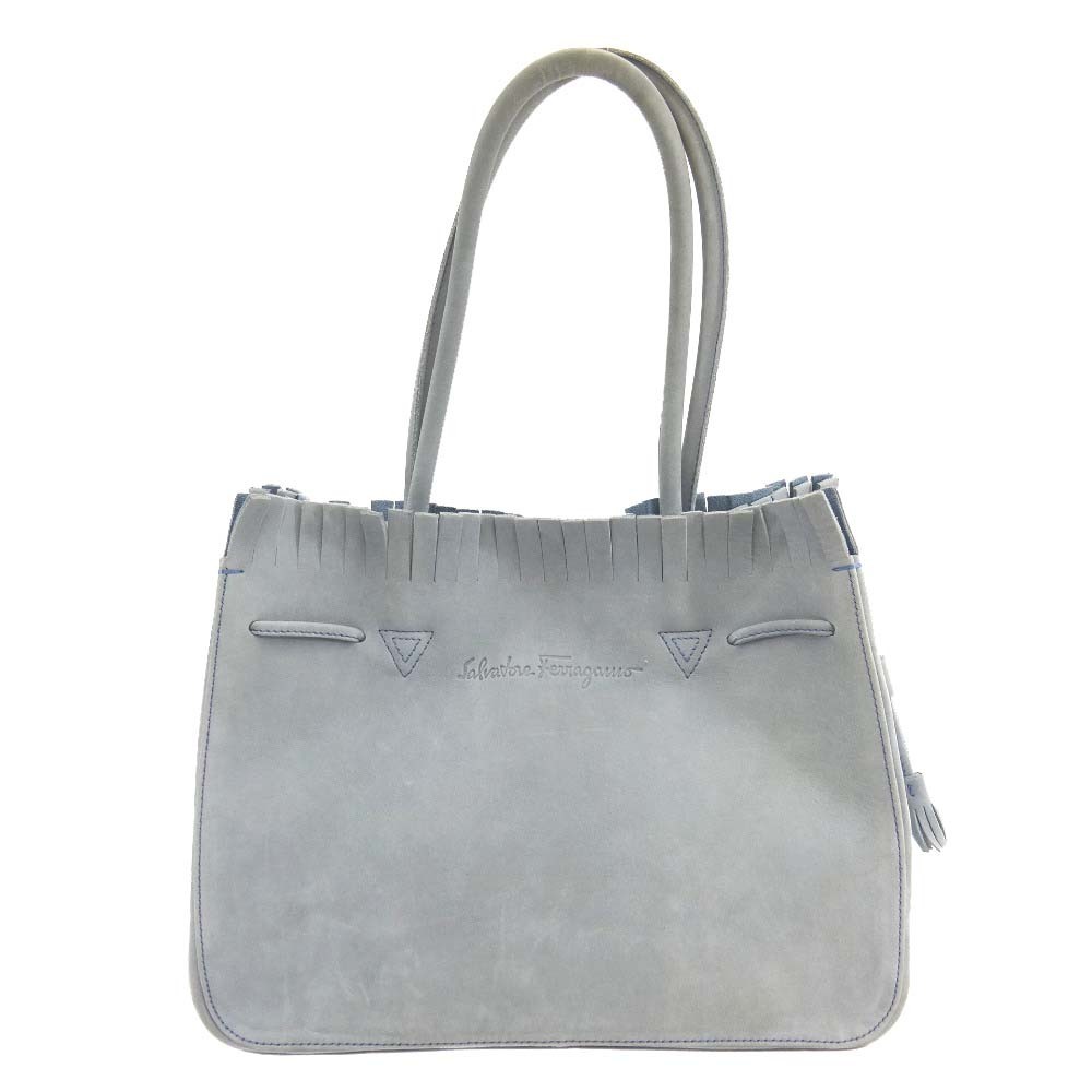 サルヴァトーレフェラガモ ポーチ付 フリンジ トートバッグ レディース ブルー系 AF-21 3279 中古 送料無料 Salvatore Ferragamo