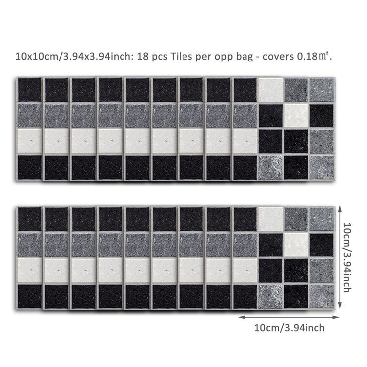 貼付けカンタン! 剥がせる タイルシール 10cm×10cm 18枚入り C735_008 キッチン 台所 洗面所 玄関 フロアシート 防水リメイクシート