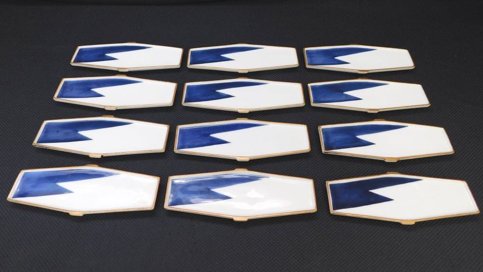 詳細 サイズ(実寸・最大・約) 23×8.1×高さ1.7cm 陶器製 銘有り 個性的な形と柄の 金彩盛皿です。前菜などにどうぞ。 ※梱包には、再生ダンボールを使用しております。ご了承くださいませ。 ※送料表をご確認の上、入札のご検討をお願い致します。 |