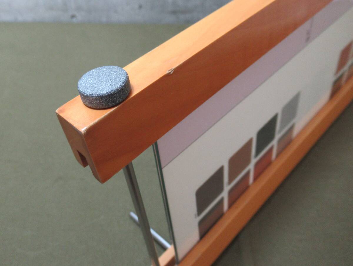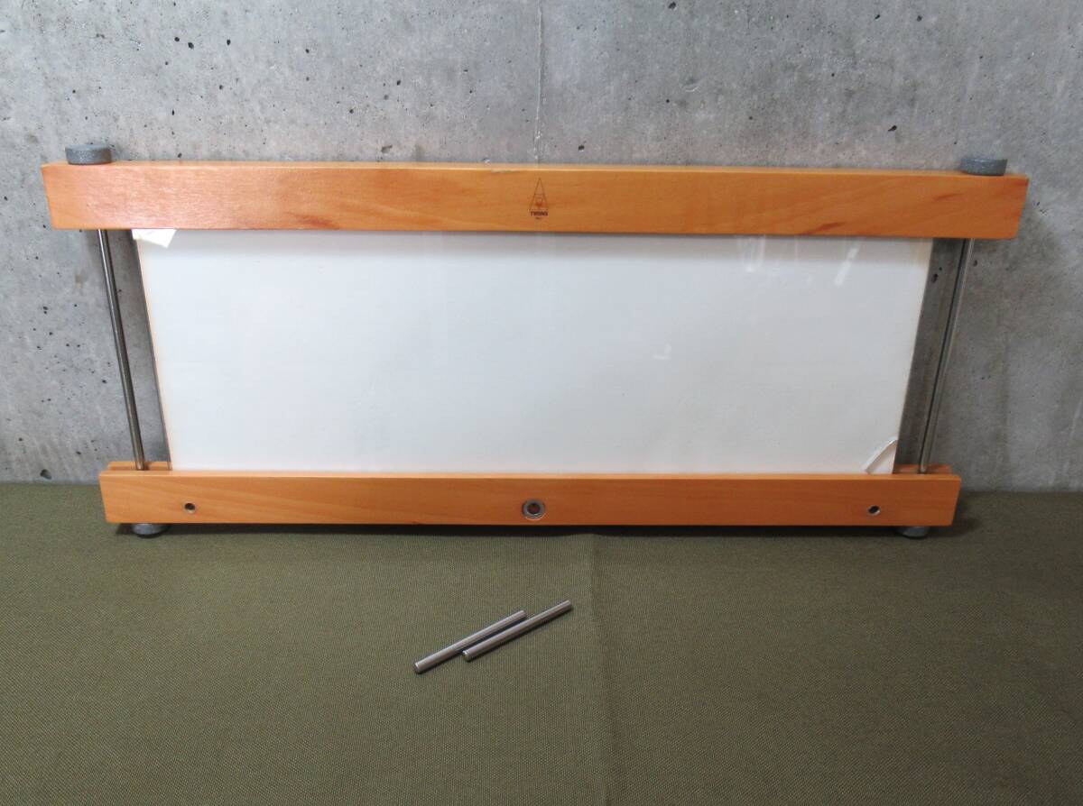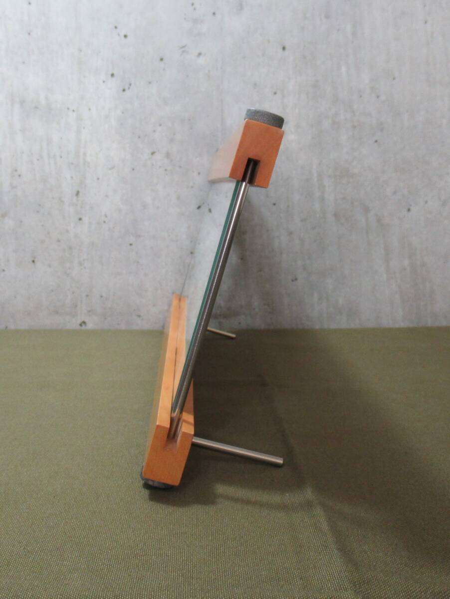 ●木製の枠に薄いガラスが2枚はめ込まれたシンプルかつ美しいデザイン。金属部分のネジを外すと分解できる作りです。