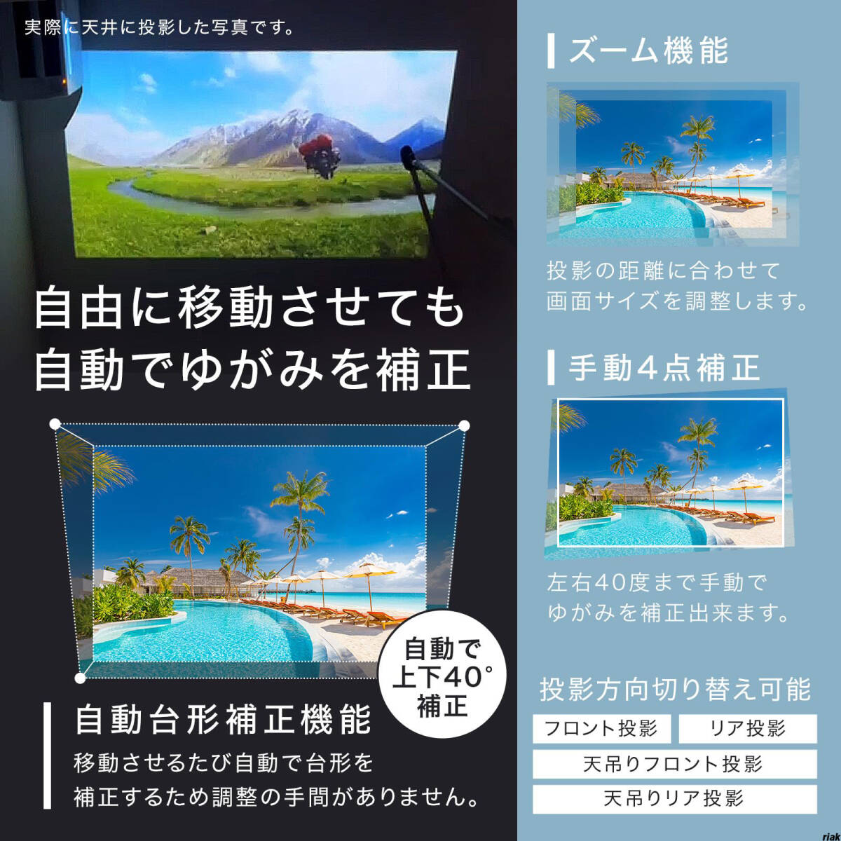 投影方式:台形補正・天井補正対応