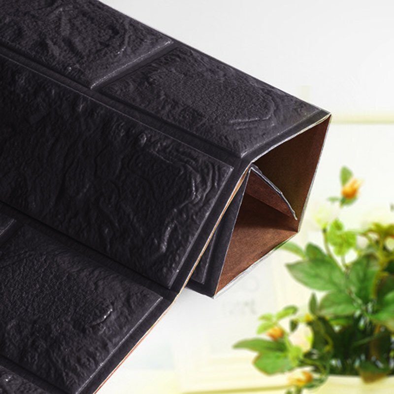 【10枚】高品質 3D クッション 壁 シール ブラック/漆黒 レンガ調 糊付き リメイク 70×77cm 耐水 抗菌 傷防止