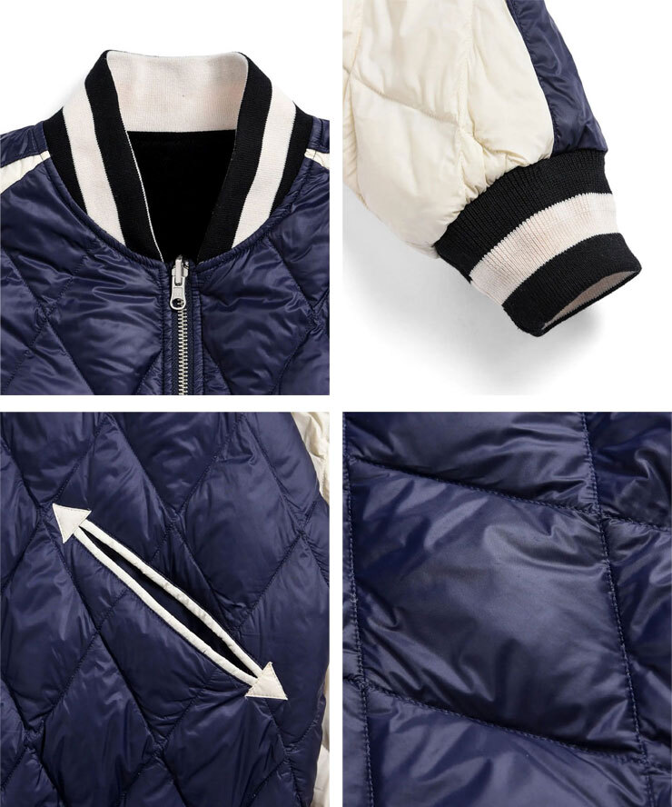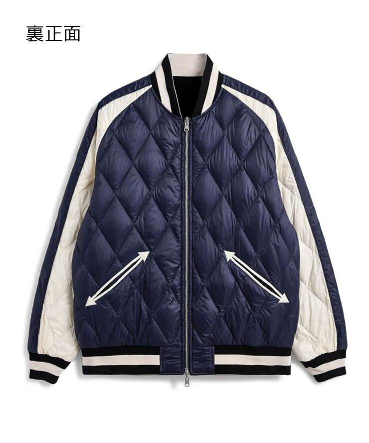 スカジャンとダウンを組み合わせた、スカジャン風リバーシブルダウンジャケット。
