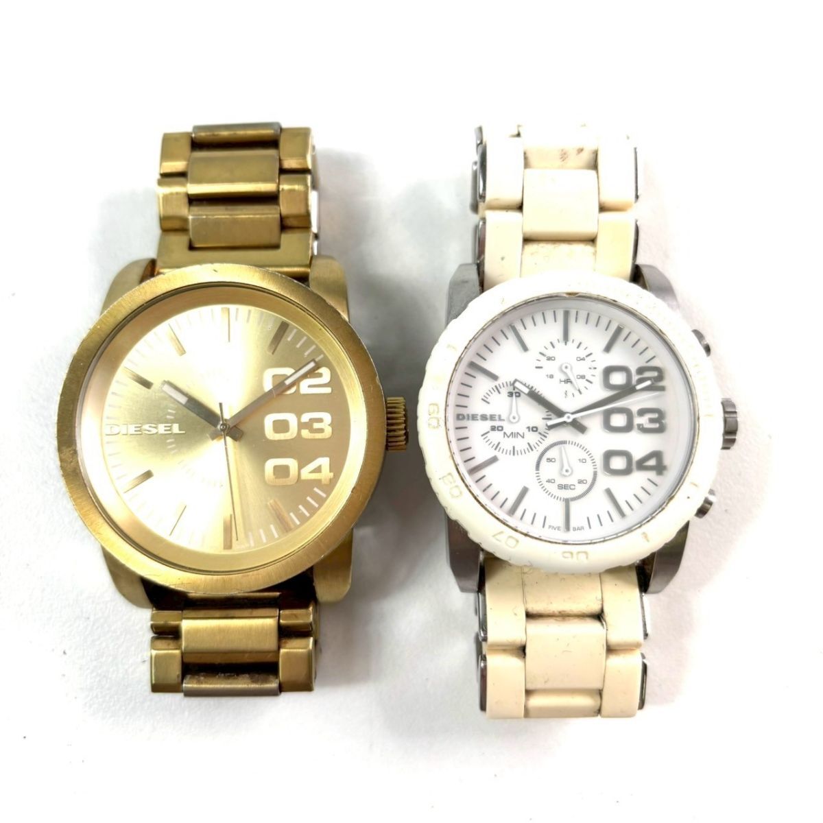 【不動品】DIESEL ディーゼル 腕時計 2点まとめ DZ-1466 DZ-5306 ゴールド文字盤 ホワイト文字盤 ウォッチ IT65R73UICPX B69