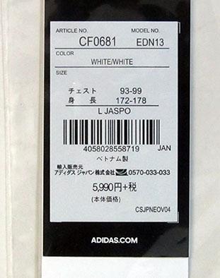 adidas アディダス CF0681 EDN13 サッカー ゲームシャツ ホワイト L