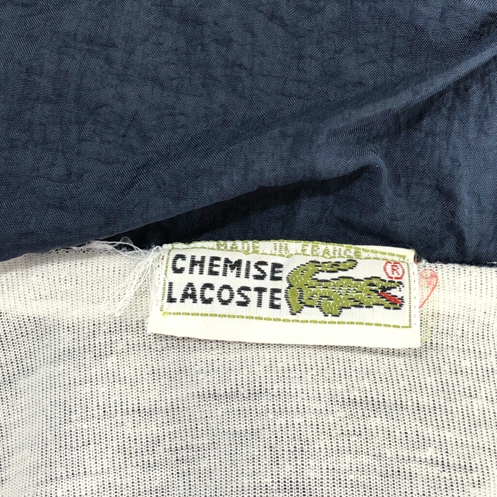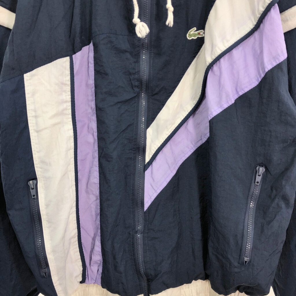 [商品管理番号] S0166 [ブランド] LACOSTE/ラコステ [サイズ] L相当 [実寸サイズ] 肩幅:約70cm 着丈:約72cm 身幅:約66cm 袖丈:約58cm [主な素材] 表地 : ナイロン [色] ネイビー [仕様] 生産国 : フランス製 80年代 ウィンドブレーカー [状態] 汚れ:肩、脇、胸、腹部、裾 | |||
