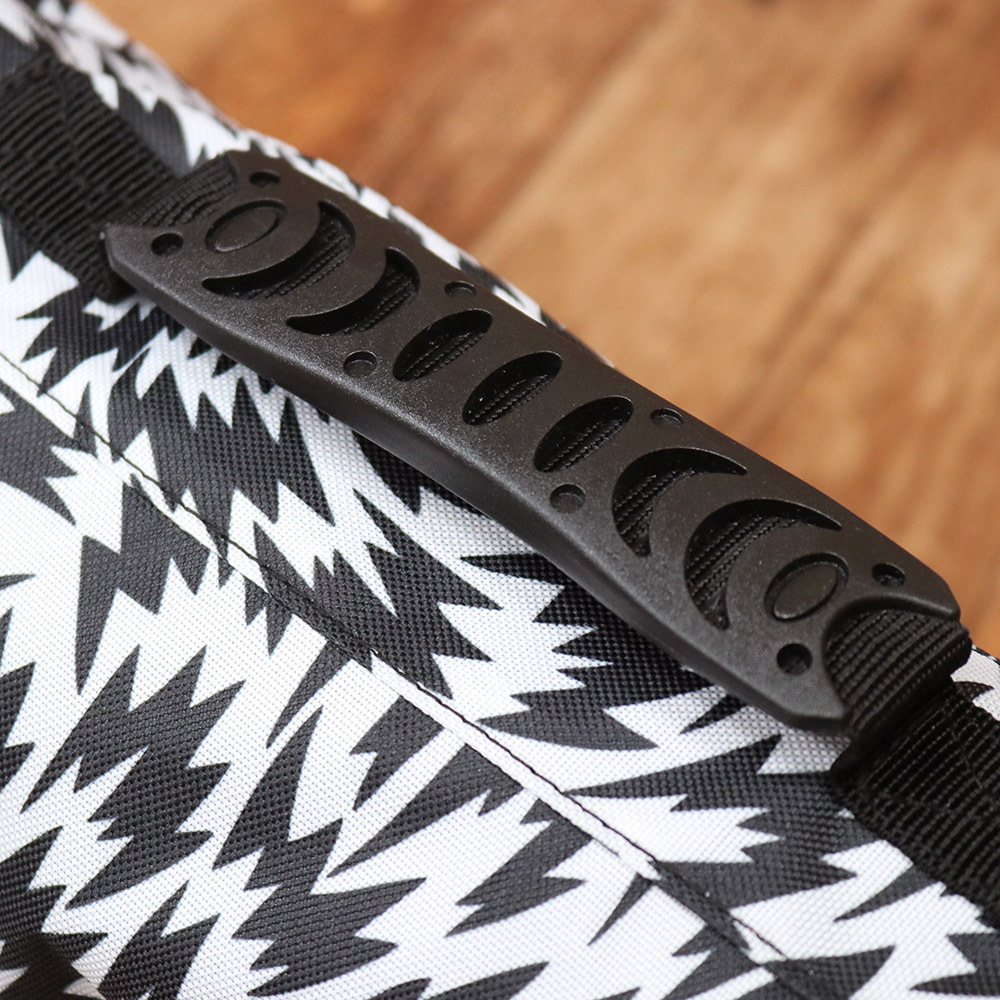 海外でも支持を集めるテキスタイルデザイナー、ELEY KISHIMOTO(イーリーキシモト)とVIVAHEARTのコラボアイテム。ELEY KISHIMOTOのグラフィックの中でもトップアイコンとなるFLASH柄です。ポリエステルキャンバスを使用し、軽量でカジュアルな見え感とサイド部分にはドリンクホルダーを付けており練習に行く際にも便利な機能を取り入れています。練習ラウンドでもひと際目を惹くポップな存在感を発揮するアイテムです。