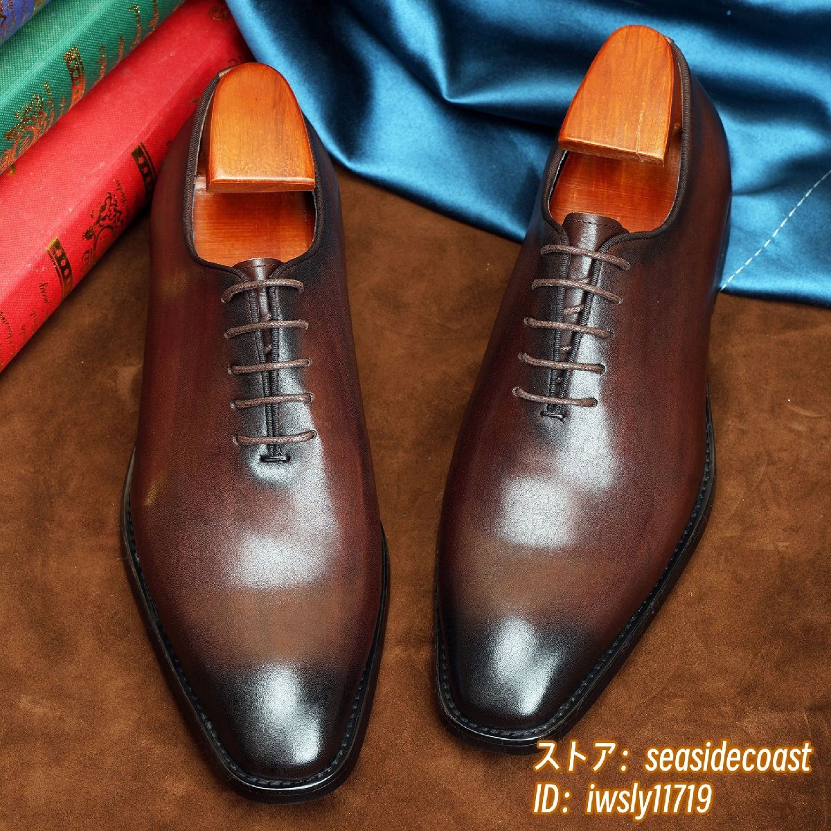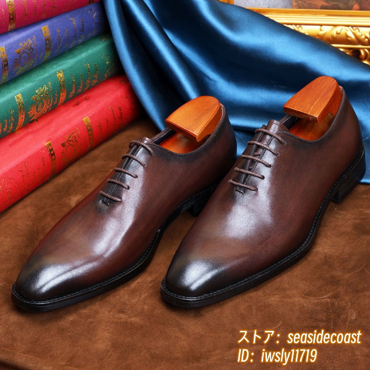 入手困難■最高級 ビジネスシューズ メンズ 本革 レザーシューズ 職人手作り 紳士靴 シンプル 革靴 超希少 大人気 牛革 珈琲色 25.0cm