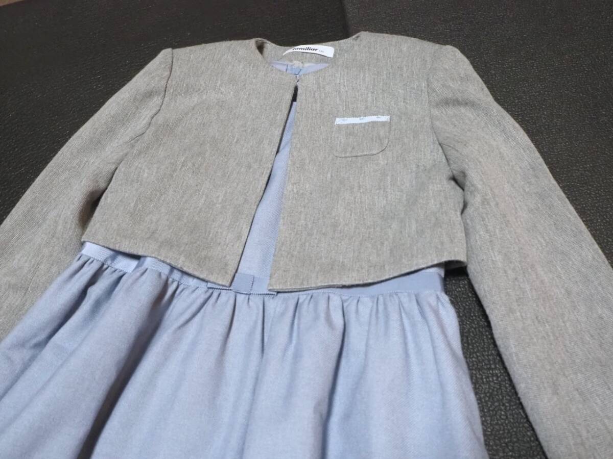 familiar ファミリア グレーボレロ Parents Dreamペアレンツドリーム 上品 水色リボンワンピース 2点まとめて サイズ130